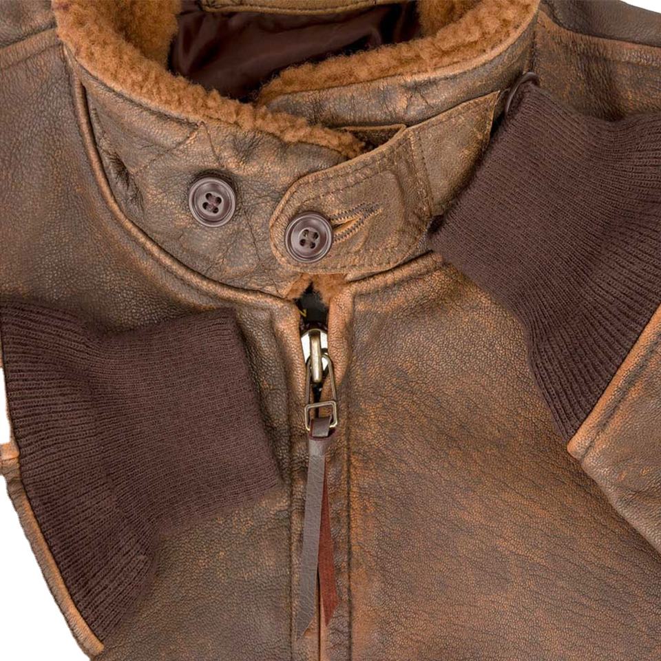 แจ็คเก็ตหนังแท้สีน้ำตาลสไตล์นักบินสำหรับผู้ชาย รุ่นดิสเทรส พร้อมปกขนสัตว์ ปี 2026