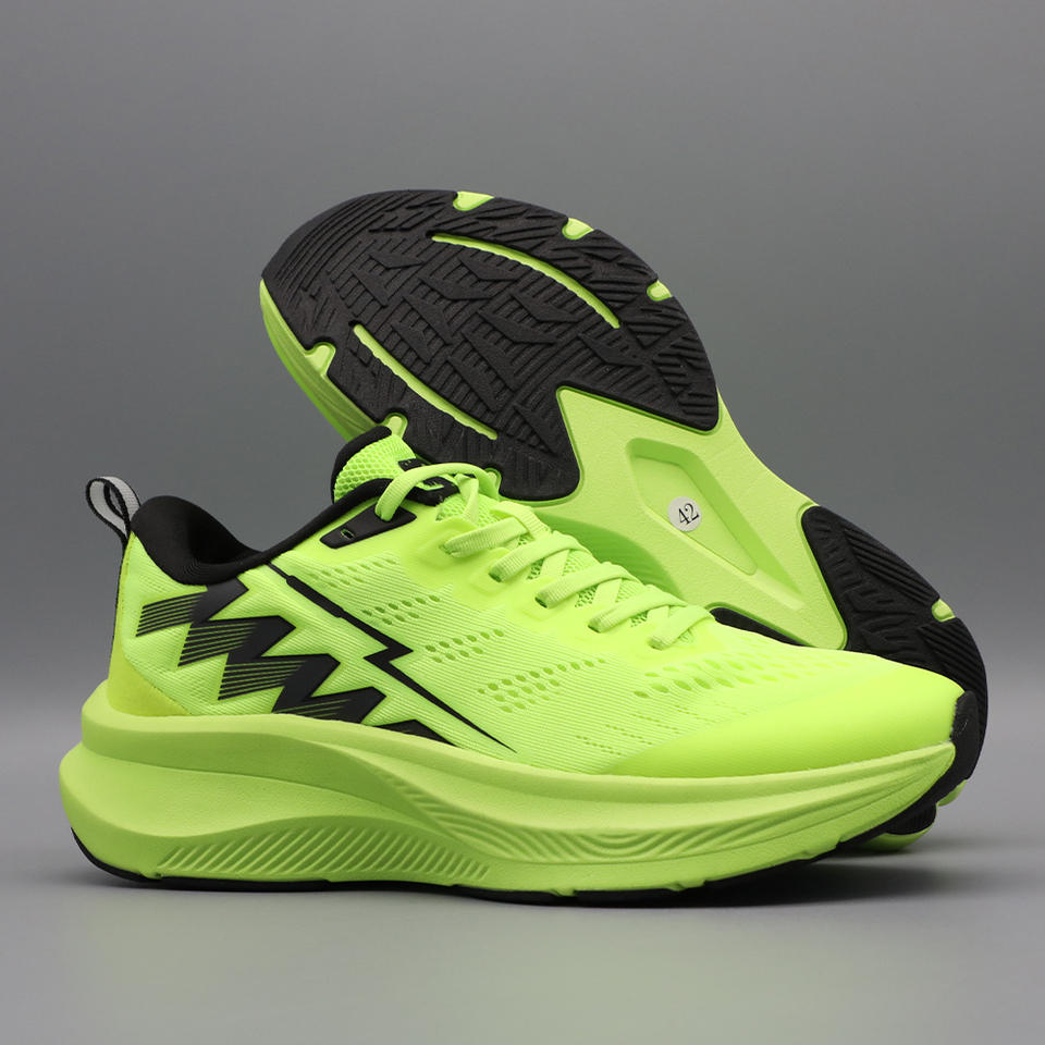 รองเท้าวิ่งตาข่ายระบายอากาศสีเขียวเรืองแสงสีดำสำหรับผู้ชาย, รองเท้าผ้าใบกีฬาแบบผูกเชือกกันลื่น
