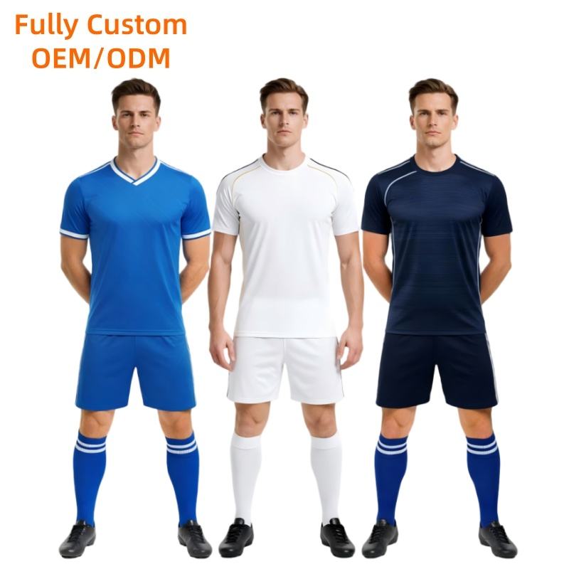 ชุดเสื้อฟุตบอลชาย ระบายอากาศ แห้งเร็ว แขนสั้น ชุดยูนิฟอร์มฟุตบอลแบบกำหนดเองได้