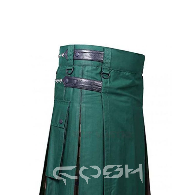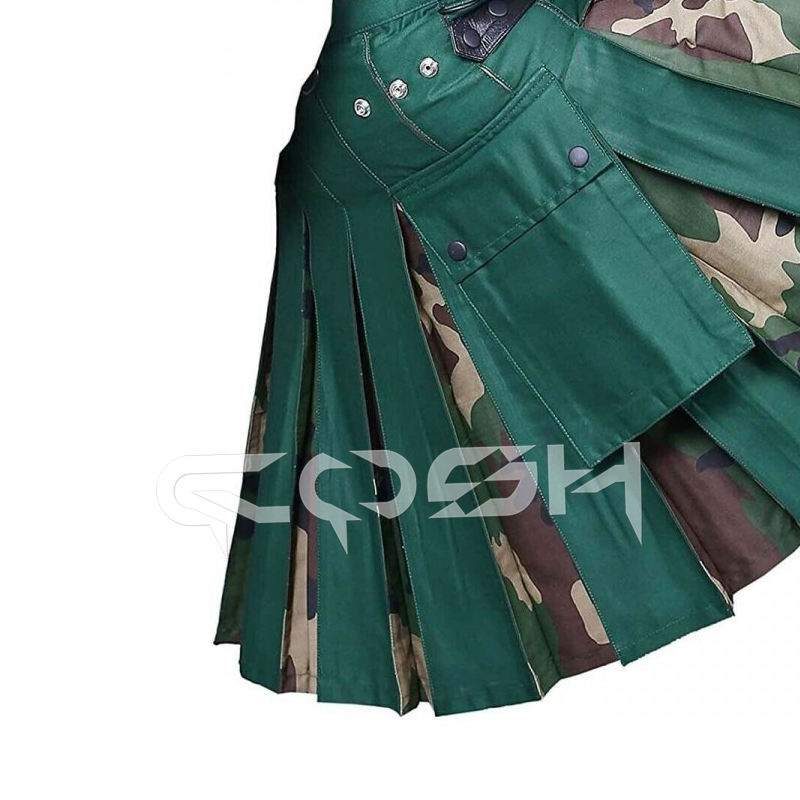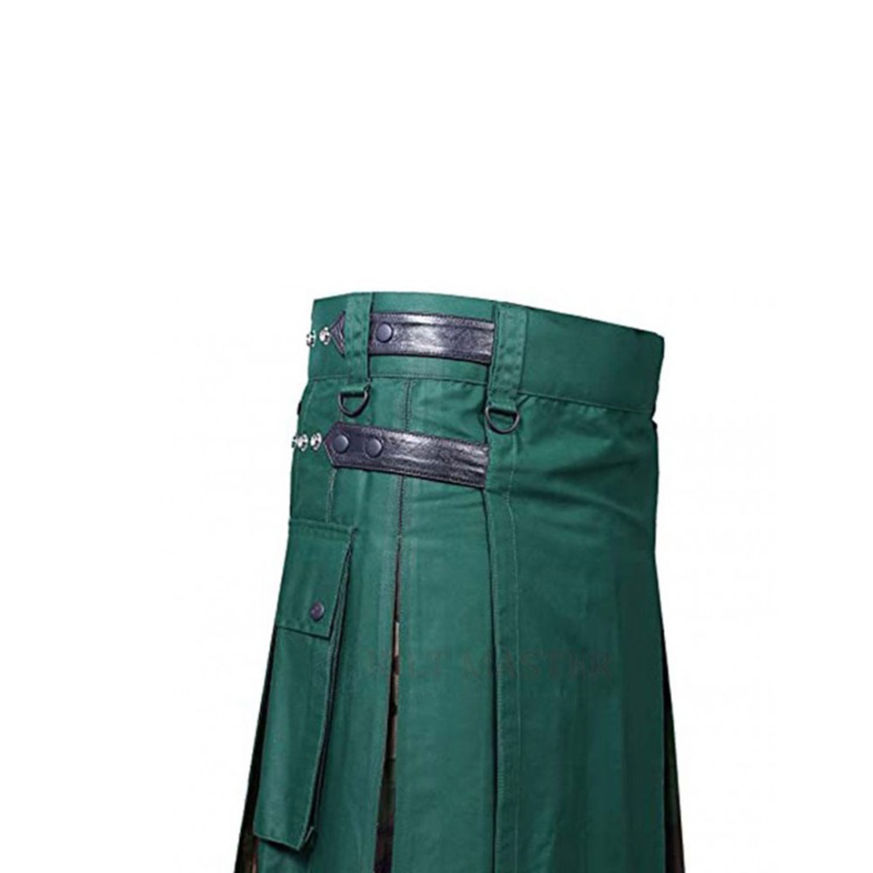 กระโปรงพับจีบอเนกประสงค์สีเขียวป่าผู้ชายพร้อมสายรัดปรับได้สไตล์มีรายละเอียดที่ทนทานและขายส่ง