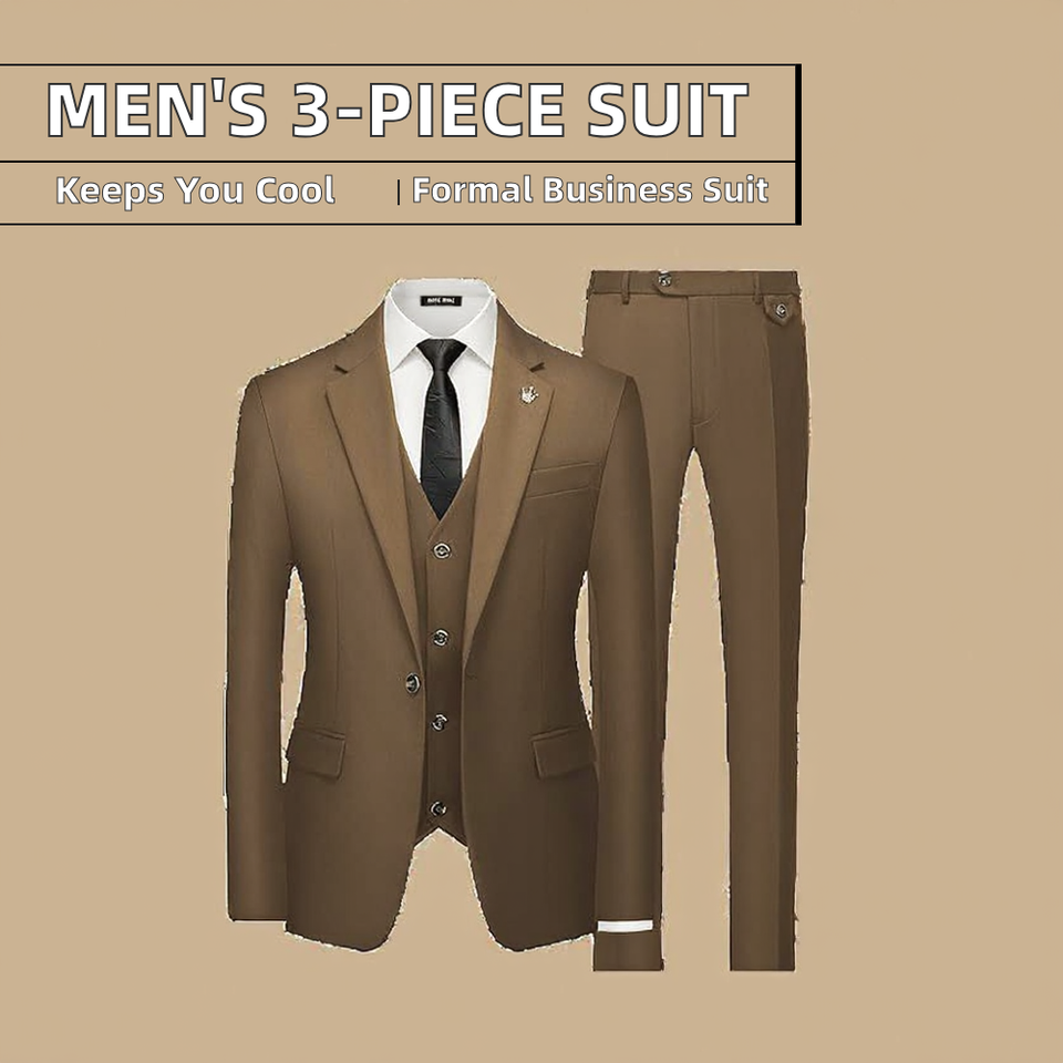 ชุดสูทผู้ชายแบบคลาสสิก 3 ชิ้น สำหรับงานแต่งงาน เสื้อสูท กางเกง และเสื้อกั๊ก ทรงเข้ารูป ระบายอากาศได้ดี ผ้า TR กันยับ