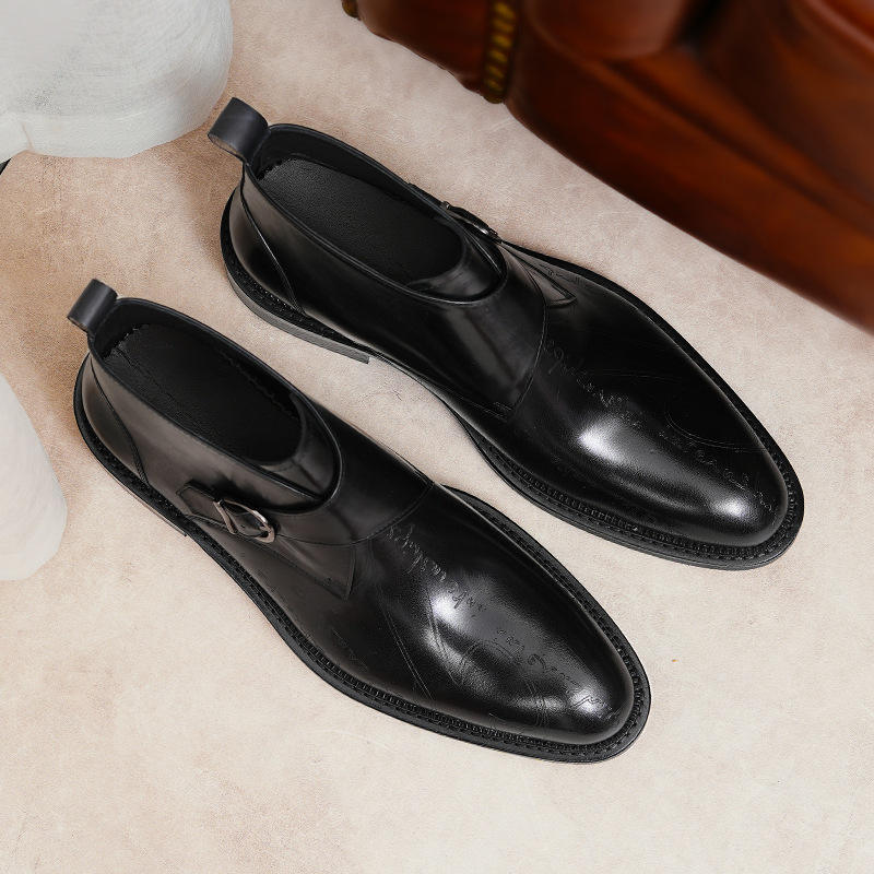 รองเท้าหนังผู้ชายสไตล์อิตาลีแบบผูกเชือก ทำมือ พื้นหนา รองเท้าทางการสำหรับผู้ชาย