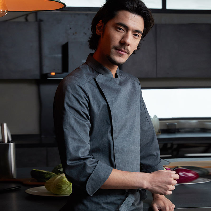 เสื้อผ้าทำงานแขนยาวสำหรับผู้ชายเสื้ออบร้านอาหารตะวันตกเครื่องแบบร้านอาหารอาชีพใหม่