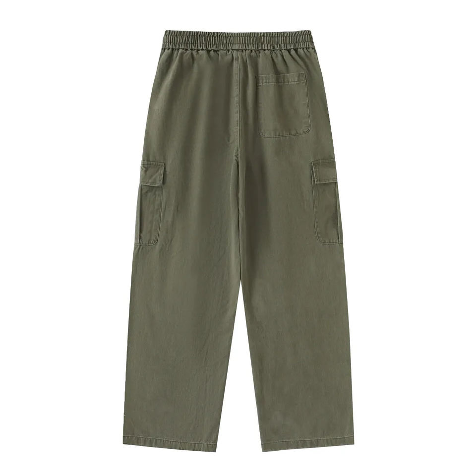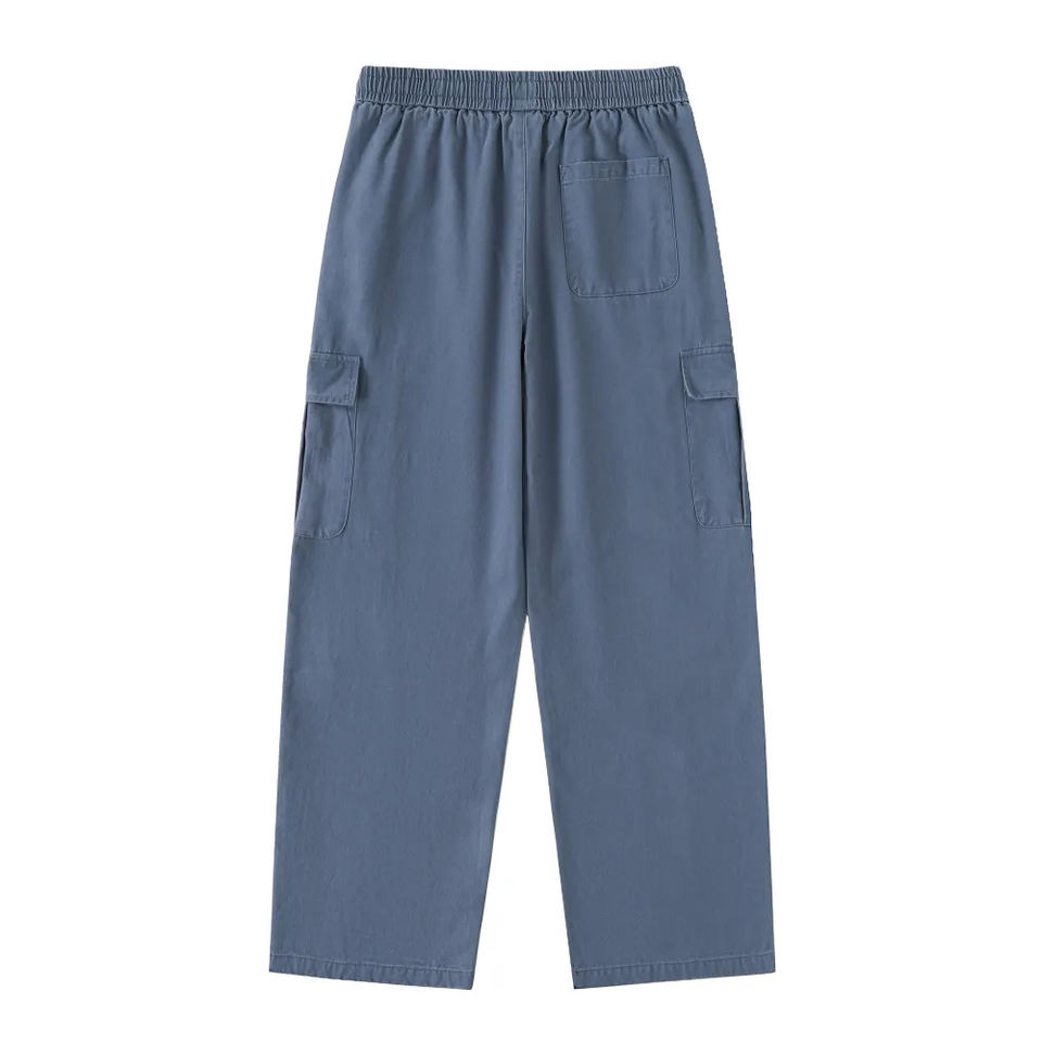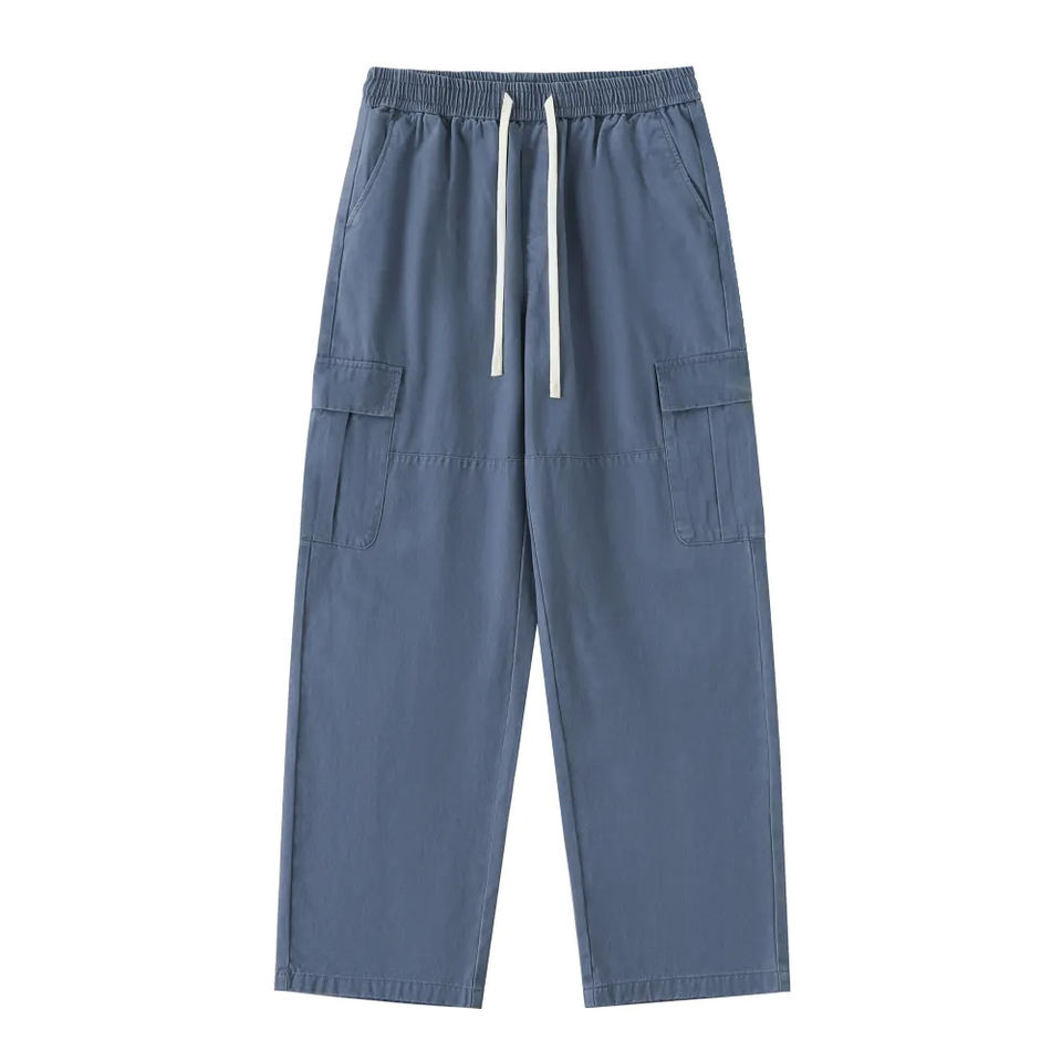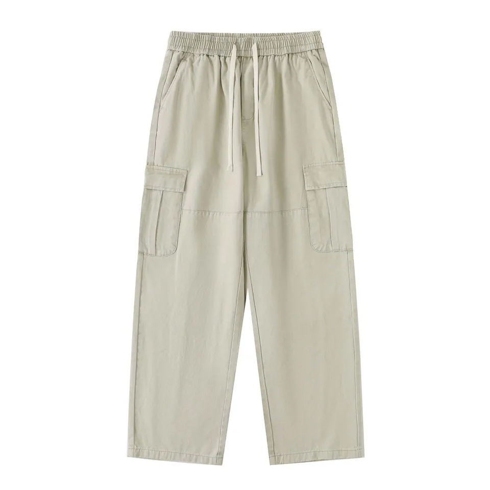 กางเกงผู้ชายทรงหลวมหลายกระเป๋า ผ้าบาง ใส่ได้ทุกฤดู ทรงตรง สไตล์คาร์โก้ ขอบดิบ ลุคสบายๆ