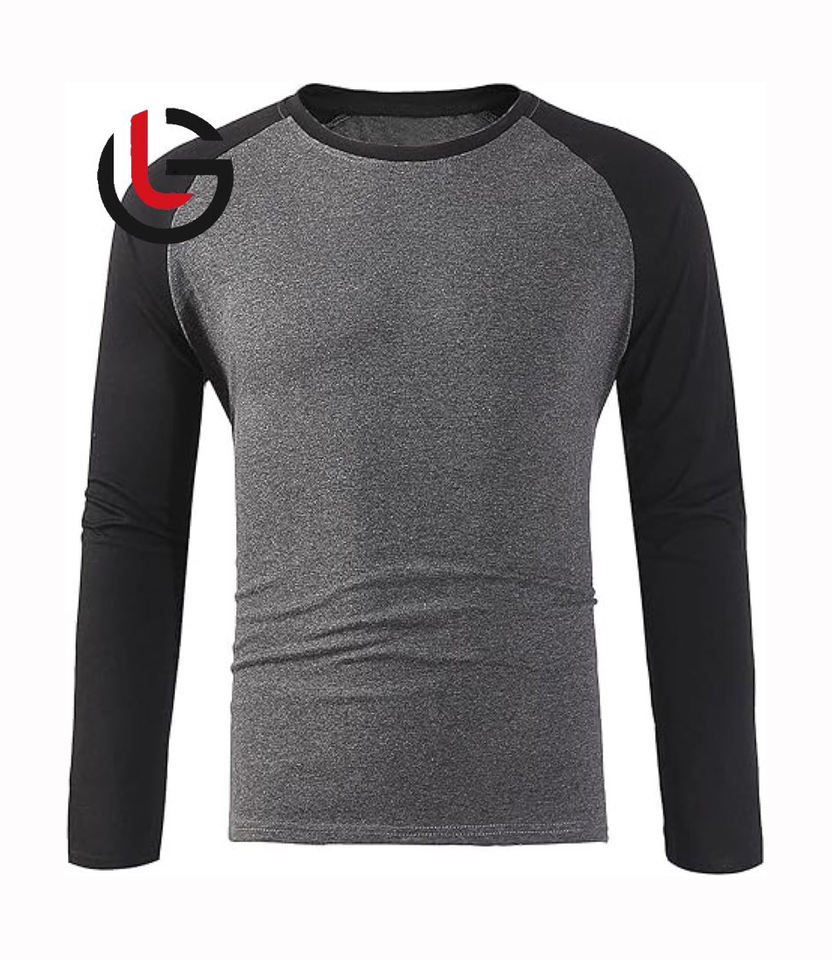 เสื้อยืดแขนยาวแบบเต็มตัวสำหรับผู้ชายเสื้อยืด100% ผ้าคอตตอนออร์แกนิกสแปนเด็กซ์250กรัมคอกลมสีเขียวแขนสีดำเทาสำหรับใส่ไปยิม