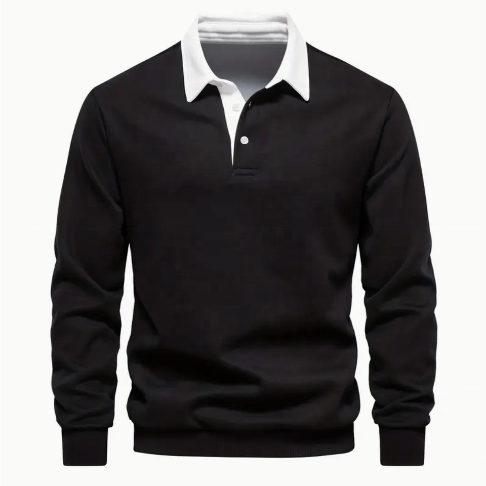 เสื้อโปโลแขนยาวผ้าคอตตอนผสมสำหรับผู้ชาย, เสื้อลำลองแบบสวมหัวระบายอากาศได้ดีสำหรับฤดูใบไม้ผลิฤดูใบไม้ร่วง