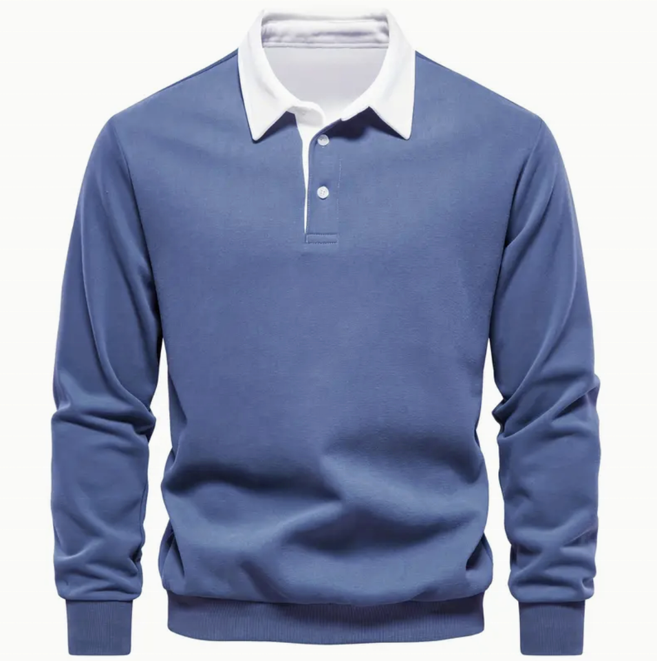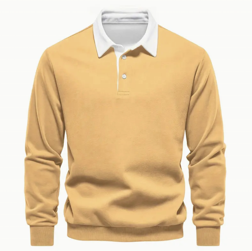 เสื้อโปโลแขนยาวสำหรับผู้ชาย, เสื้อผ้าผู้ชายผ้าฝ้ายผสมแบบสวมหัวลำลองแบบย้อนยุคเสื้อโปโลแขนยาวสำหรับฤดูใบไม้ผลิฤดูใบไม้ร่วง