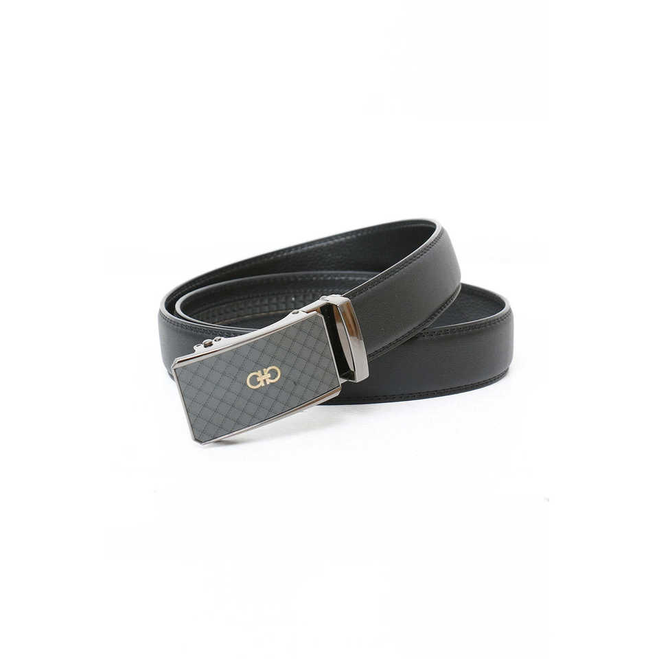 เข็มขัดหนังวัวแท้สำหรับผู้ชายแบบออโตเมติกสำหรับหัวเข็มขัดสไตล์ลำลองที่เป็นทางการปรับแต่งความยาวได้ตามต้องการสีดำโลหะหลากหลายสไตล์ตะวันตก