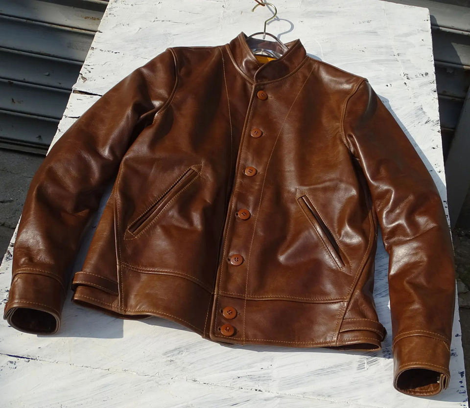 แจ็กเก็ตหนังวัวแท้ผู้ชาย, เสื้อเบสบอลเข้ารูปสั้นวินเทจทำด้วยมือสไตล์คอซแซคสำหรับรถจักรยานยนต์