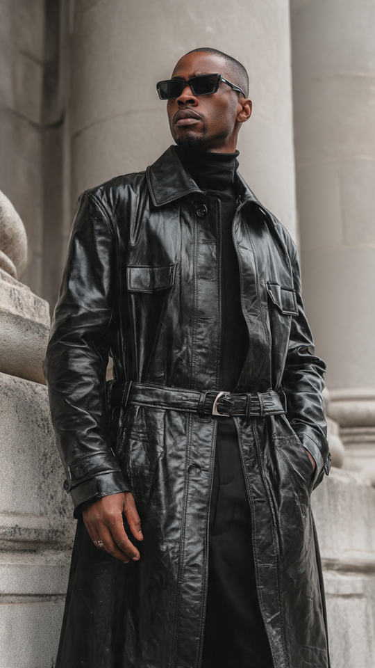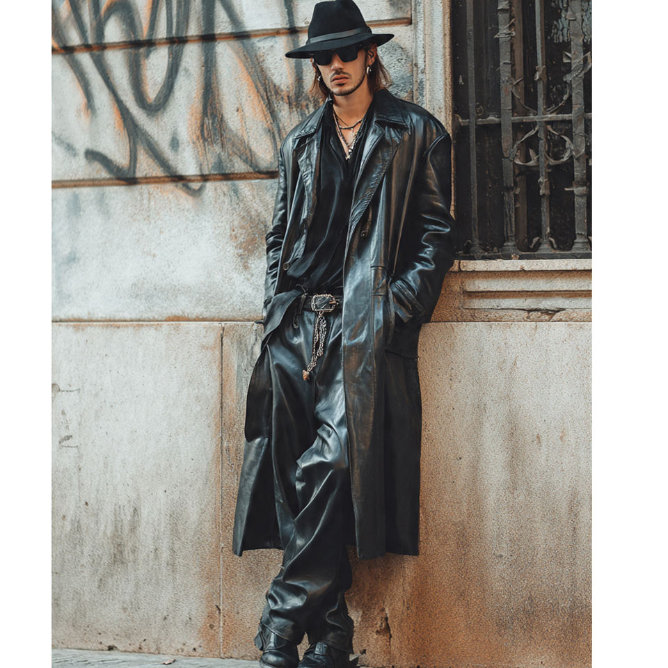 เสื้อเทรนช์โค้ทหนังตัวนอกตัวยาว