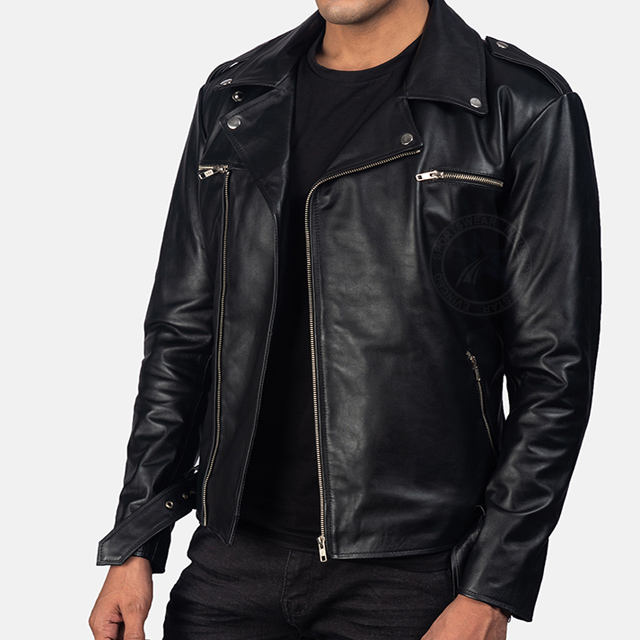 Men's Genuine Lambskin Motorcycle Jacket Distressed Stand Collar Front Logo High Quality