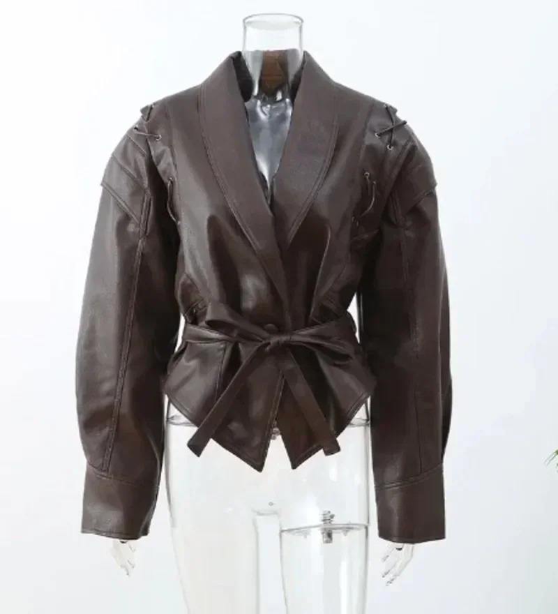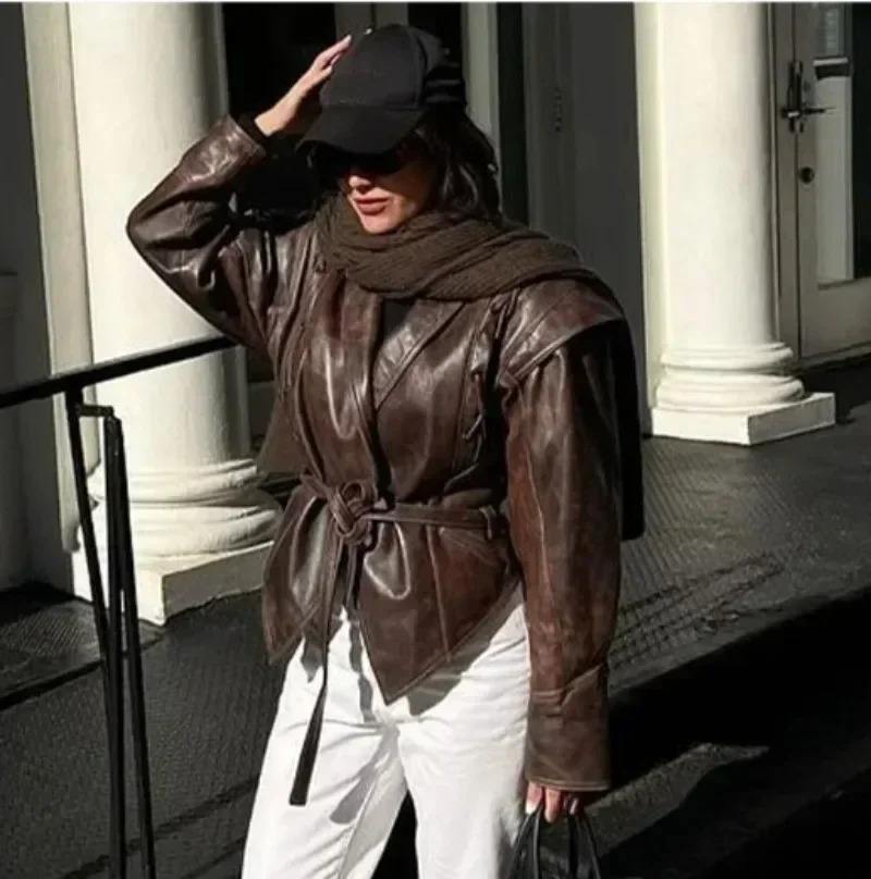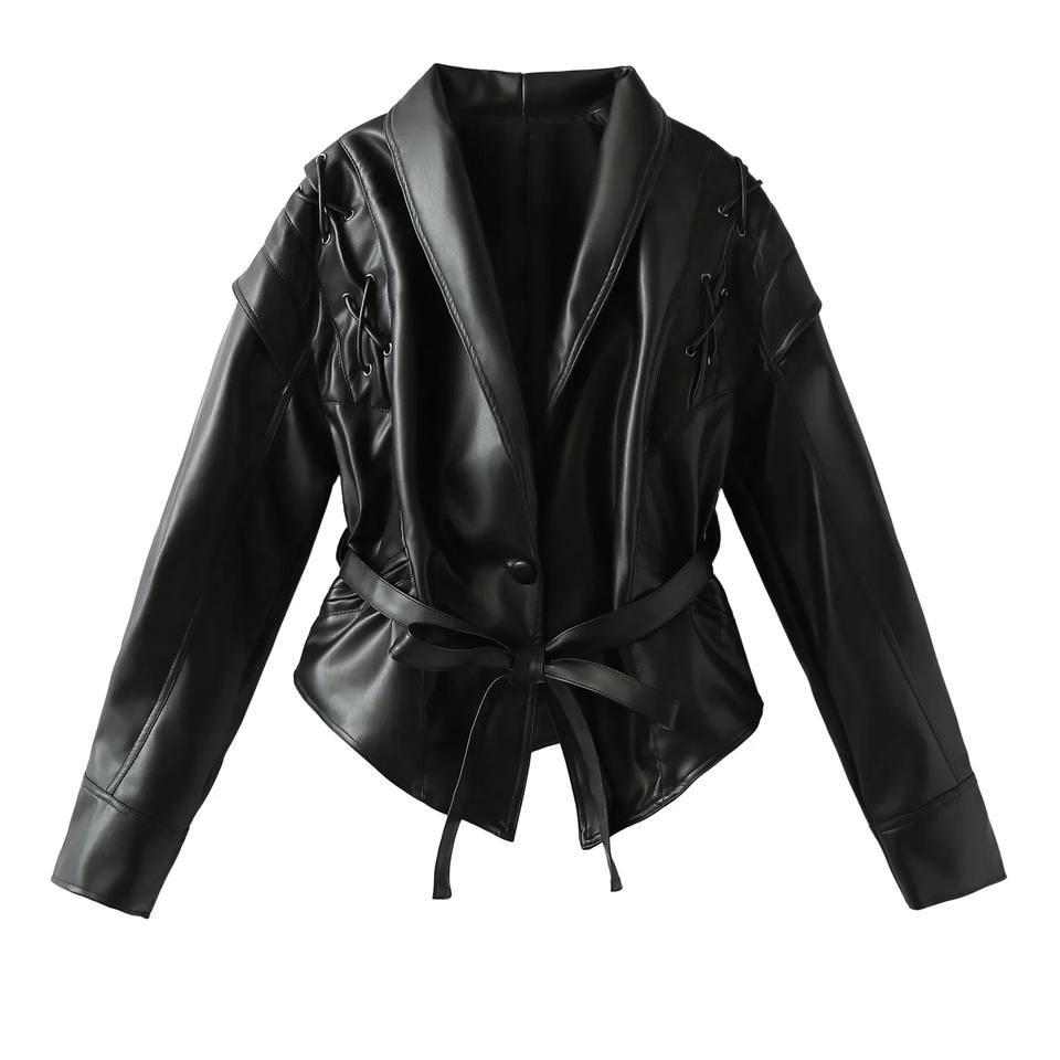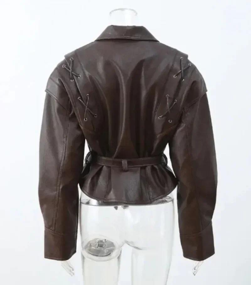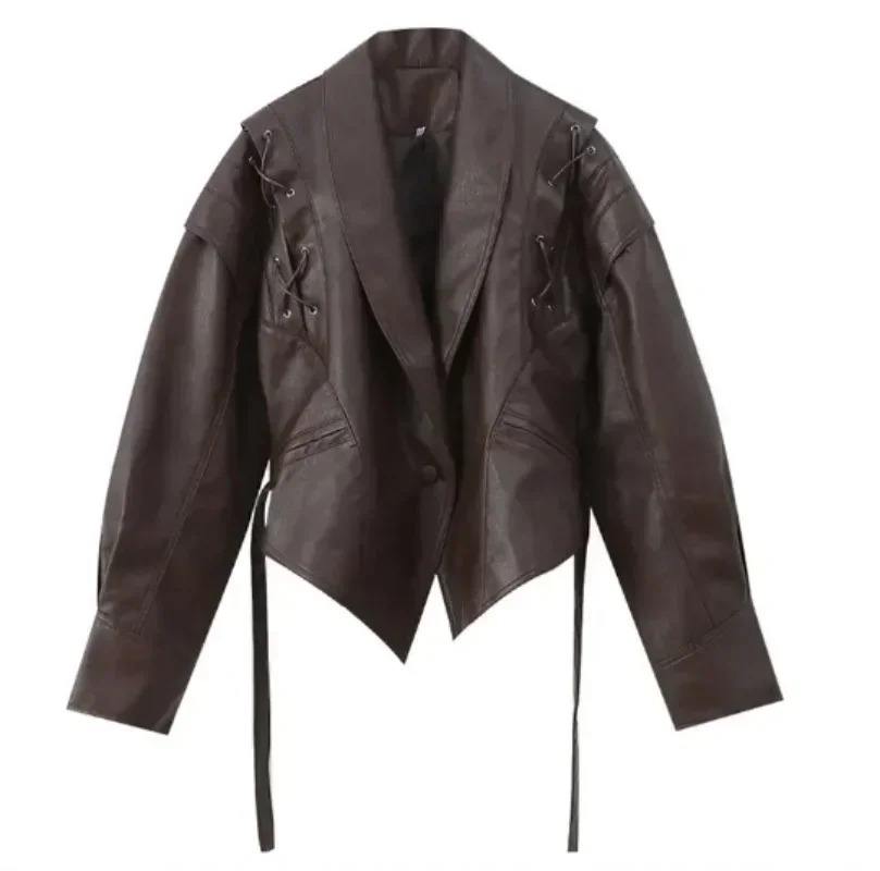 เสื้อแจ็กเก็ตหนังแท้สำหรับผู้ชายกันน้ำสไตล์สตรีทแบบผูกเชือกระบายอากาศได้ดีสำหรับฤดูใบไม้ผลิฤดูใบไม้ร่วง