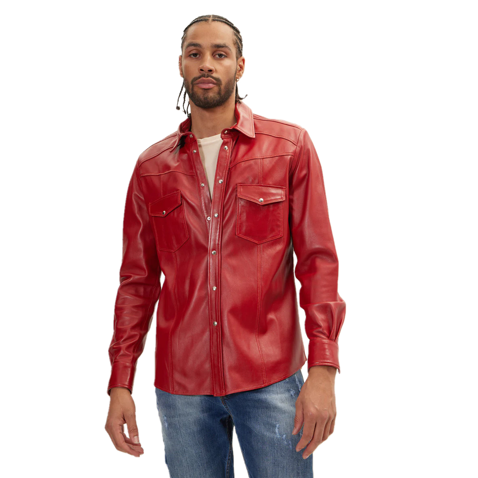 เสื้อเชิ้ตกระเป๋าคู่หนังแท้ผู้ชาย