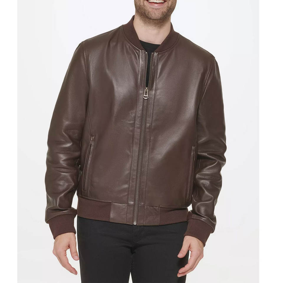เสื้อแจ็กเก็ตหนังวัวแท้สำหรับผู้ชายสไตล์สตรีทพร้อมคอตั้งนุ่มทนทานสำหรับสวมใส่แบบลำลอง