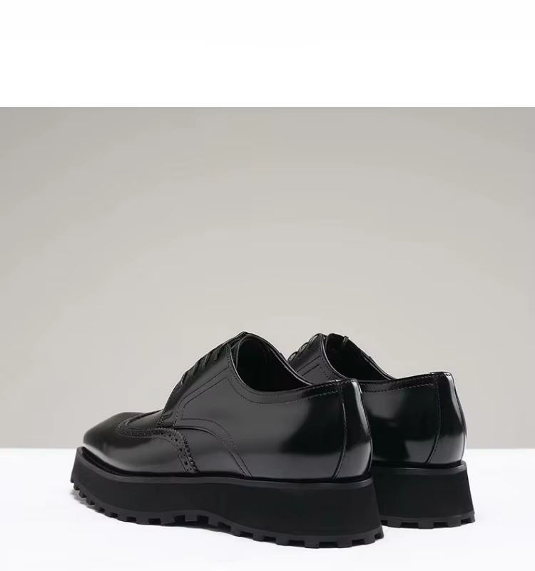รองเท้าผู้ชายแบบผูกเชือก สไตล์บริติช พื้นหนา กันน้ำ รองรับอุ้งเท้า ระบายอากาศ เพิ่มความสูง สีดำ ลำลอง ธุรกิจ
