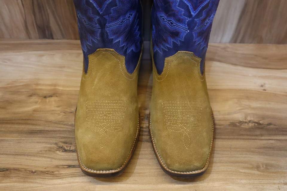 รองเท้าบูทคาวบอยหนังแท้แบบหนังกลับสไตล์ตะวันตกสำหรับผู้ชาย