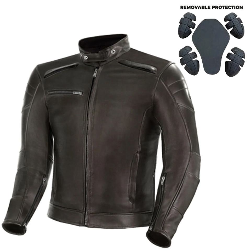 เสื้อแจ็กเก็ตมอเตอร์ไซซ์หนังแท้สำหรับผู้ชาย, เสื้อแจ็กเก็ตมอเตอร์ไซซ์พิเศษ CE Level 1ที่ถอดออกได้สำหรับขี่มอเตอร์ไซค์ขี่มอเตอร์ไซค์แนววินเทจ