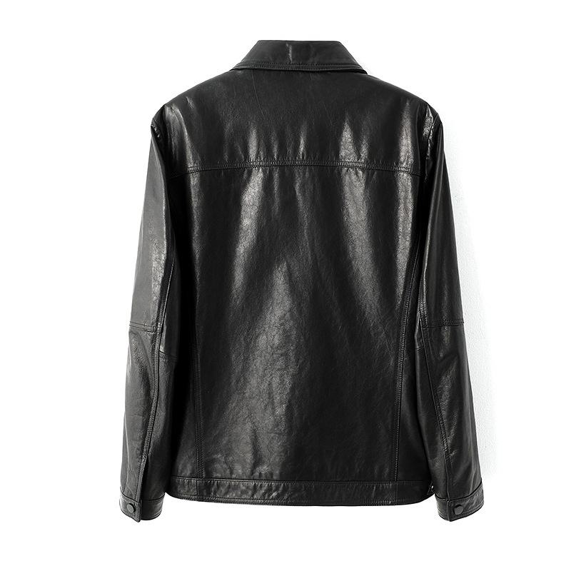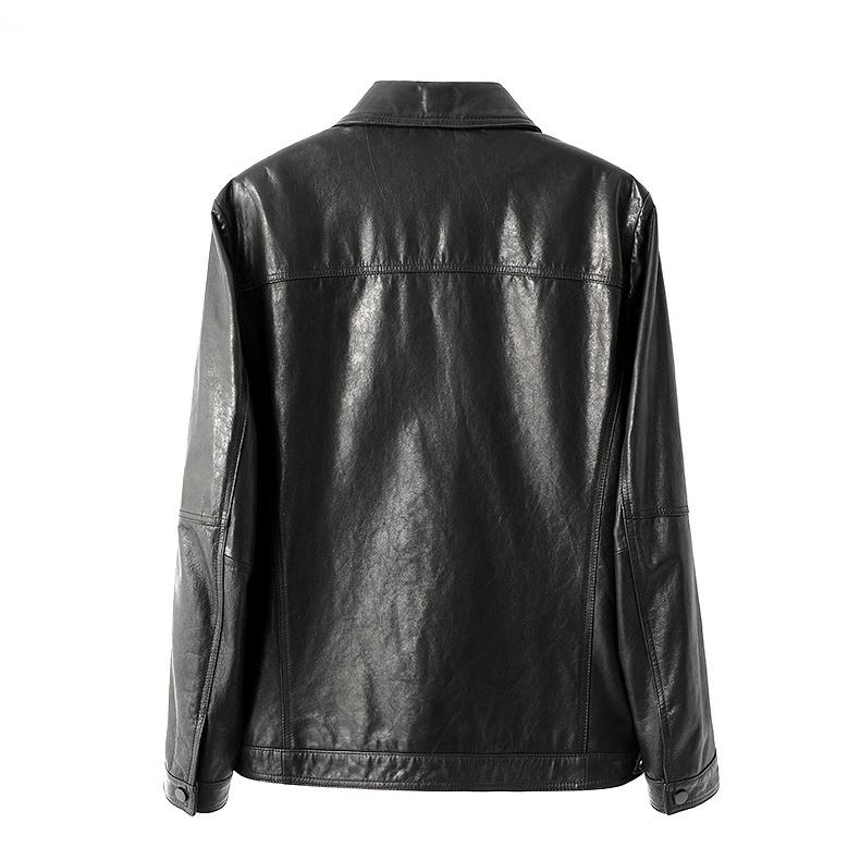 แจ็คเก็ตหนังแท้ผู้ชายแบบถักสไตล์วาร์ซิตี้ หนังวัวเคลือบด้านหน้า ความยาวปกติ มีฮู้ด ทรงลำลองสำหรับธุรกิจ ฤดูใบไม้ร่วง ฤดูหนาว สไตล์วินเทจ