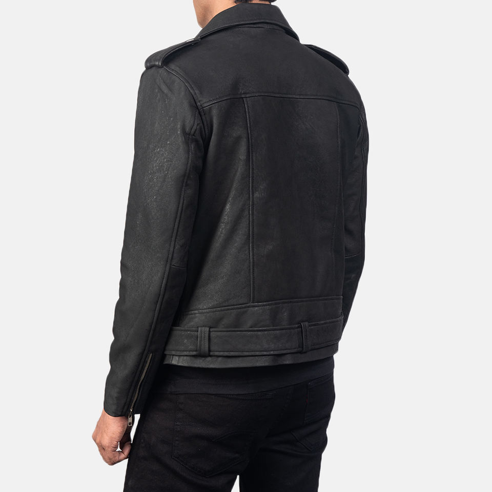 เสื้อแจ็คเก็ตหนังวัวแท้พรีเมียมสำหรับผู้ชาย แจ็คเก็ตขี่มอเตอร์ไซค์คอตั้ง สีดำ สไตล์วินเทจ ทรงเข้ารูป