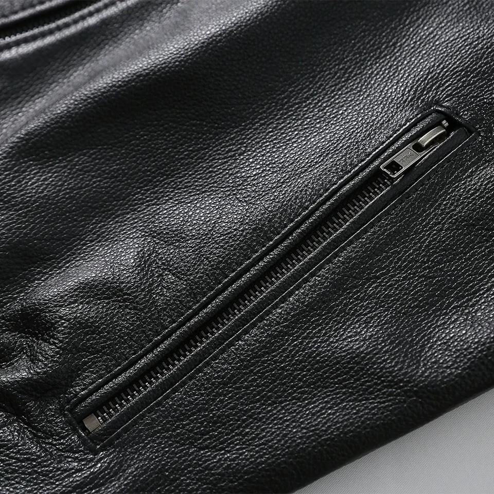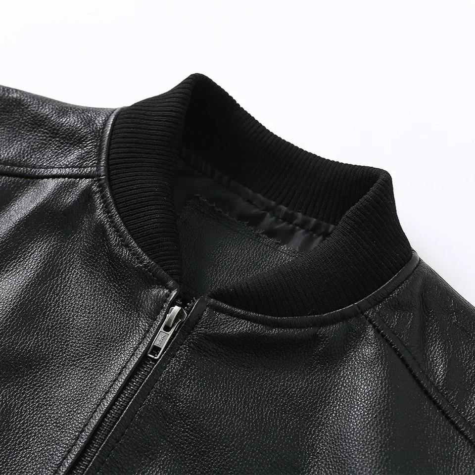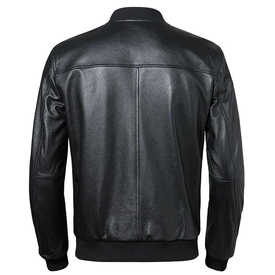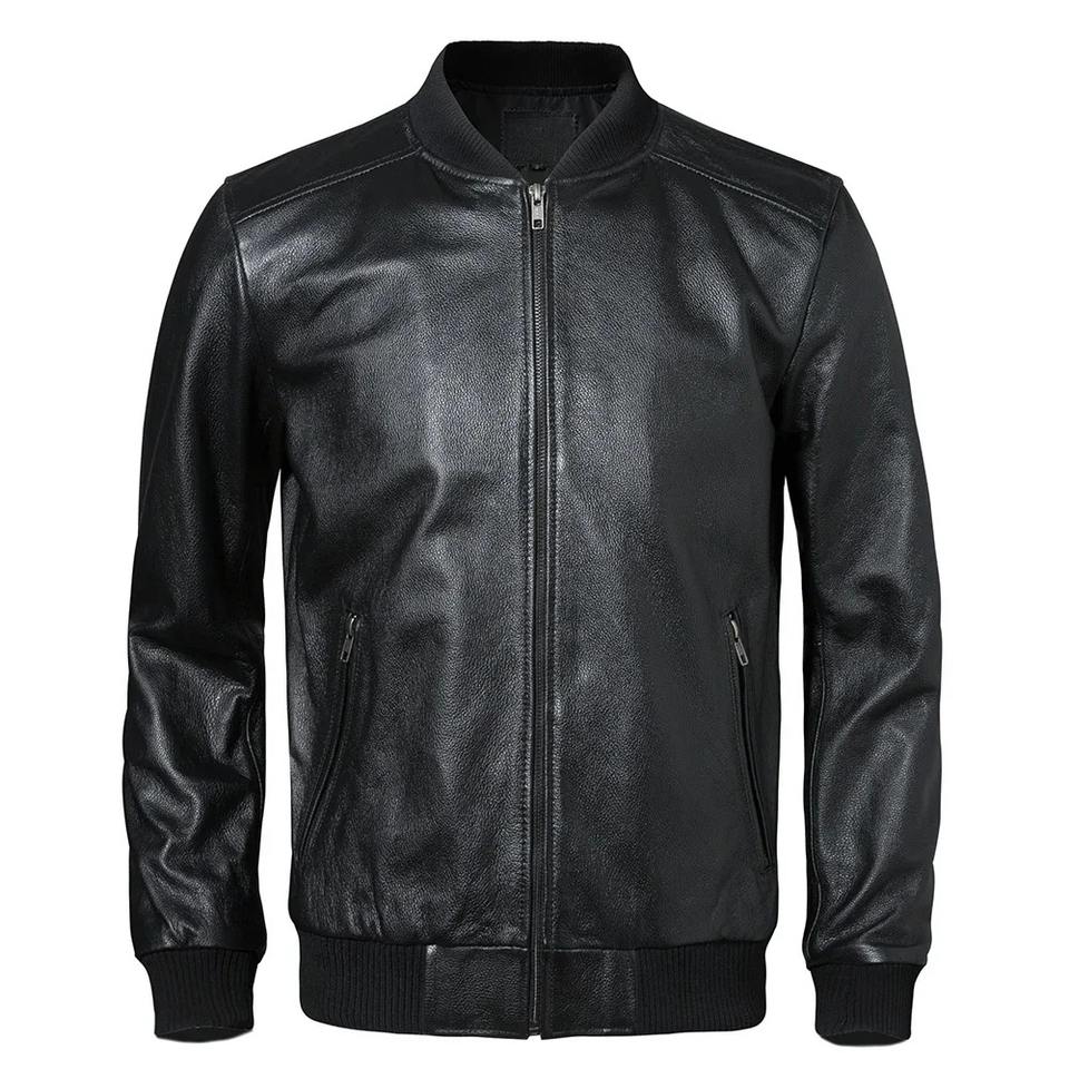 เสื้อแจ็คเก็ตหนังแกะแท้สำหรับผู้ชาย ปกตั้ง หนังวัวแท้ 100% ทรงเข้ารูป เหมาะสำหรับฤดูใบไม้ผลิและฤดูใบไม้ร่วง ไซส์เอเชีย