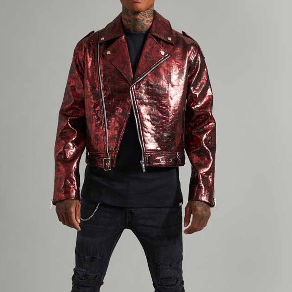 เสื้อเชิ้ตผู้ชายหนังแกะแท้ ระบายอากาศได้ดี ไซส์ใหญ่ ปกคอพับ โลโก้ด้านหน้า ซับในหนา สไตล์ไฮสตรีท