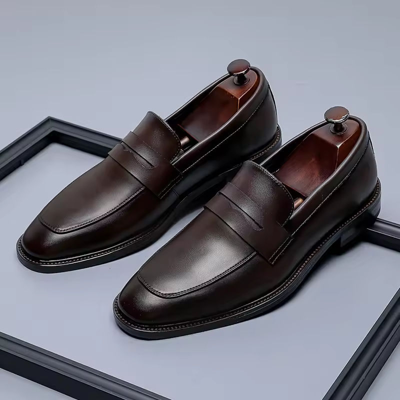 รองเท้าโลฟเฟอร์หนังแท้สำหรับผู้ชาย หัวกลม สไตล์ลำลอง ธุรกิจ ใส่ทำงาน น้ำหนักเบา ระบายอากาศได้ดี ใส่ได้ทุกฤดู