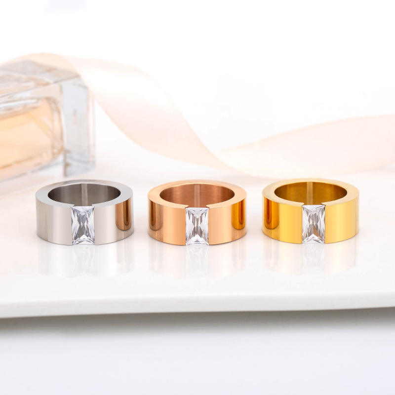แหวนเพชรทรงเรขาคณิตสำหรับผู้ชาย ทรงเจ้าหญิง ชุบทอง ไทเทเนียมสตีล เครื่องประดับสำหรับงานเลี้ยง XYR0036