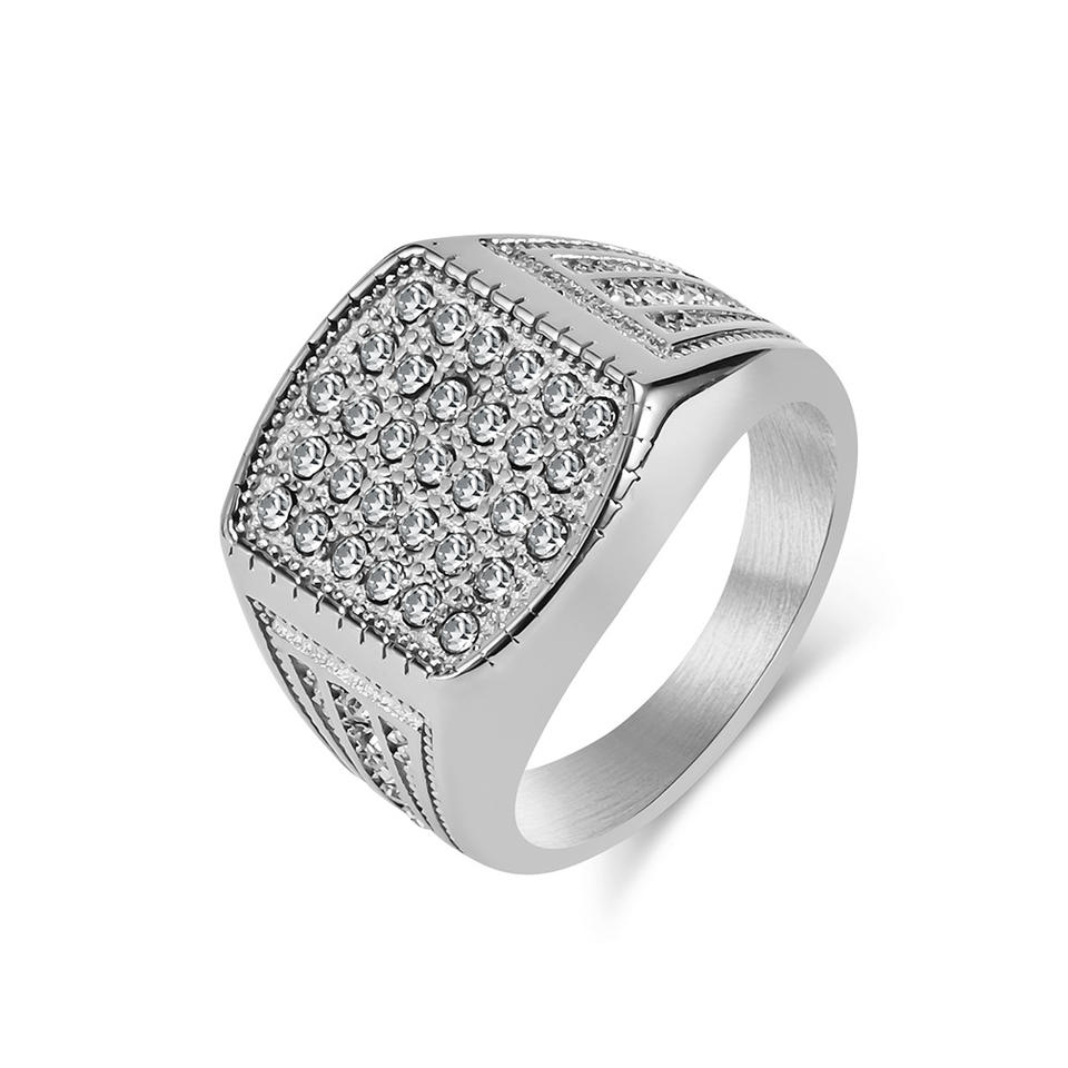 แหวนไทเทเนียมลายเรขาคณิตสำหรับผู้ชาย ชุบทอง 18K ประดับเพชรไมโครเพฟ ของขวัญเครื่องประดับ
