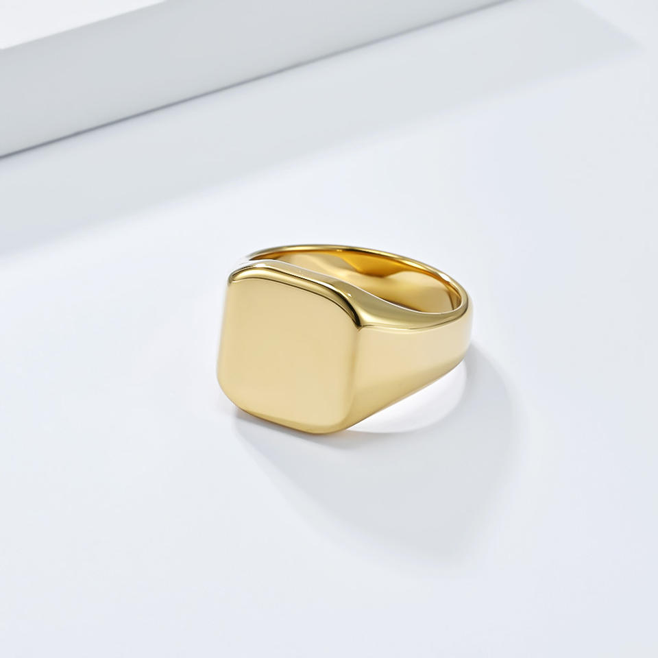 แหวนเหล็กทังสเตนทรงเรขาคณิตสำหรับผู้ชาย สีทอง สีดำ สีเงิน ทรงสี่เหลี่ยม แหวนตราประทับ เครื่องประดับแฟชั่น ของขวัญ