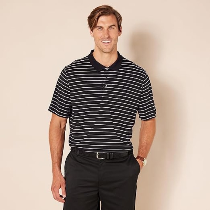เสื้อโปโลชายสำหรับตีกอล์ฟ ซับเหงื่อ แห้งเร็ว แขนสั้น ลายทางสีแอนทราไซต์ รุ่นอื่นๆที่เหมาะกับการใช้งานอื่นๆ