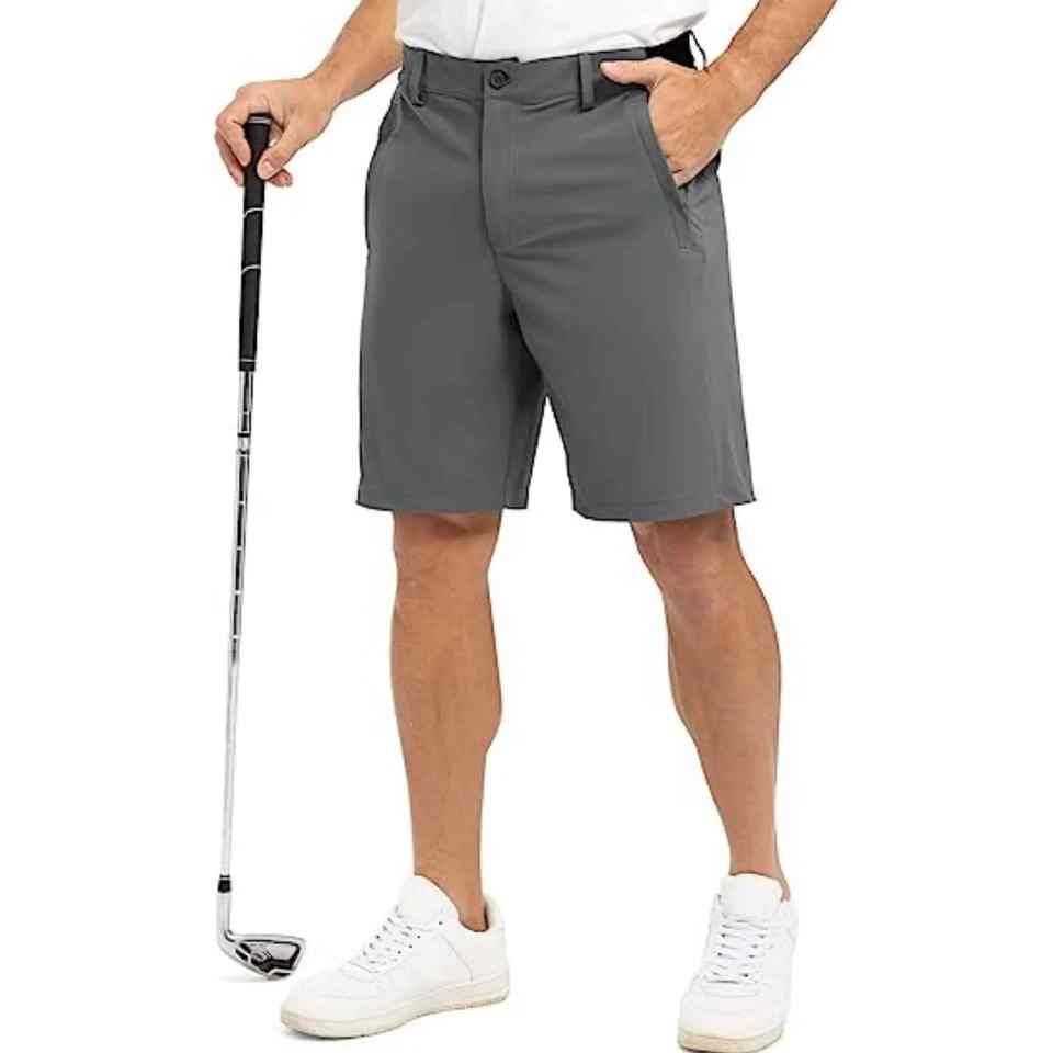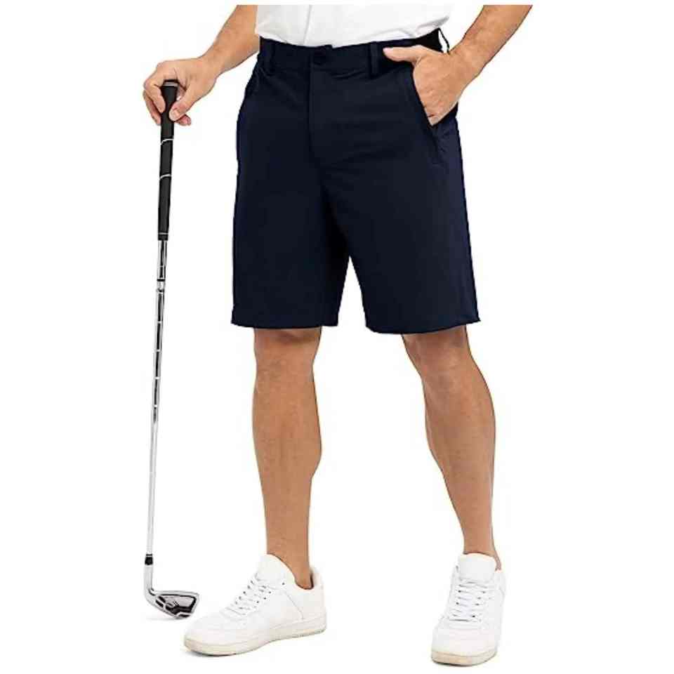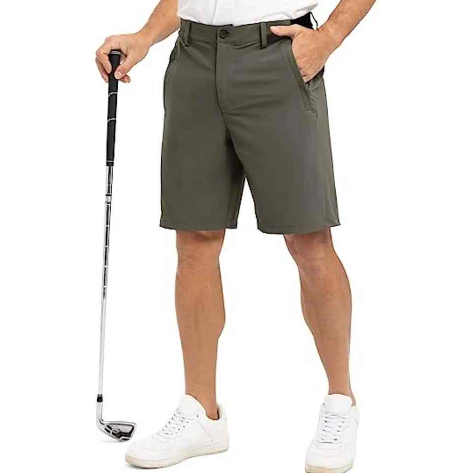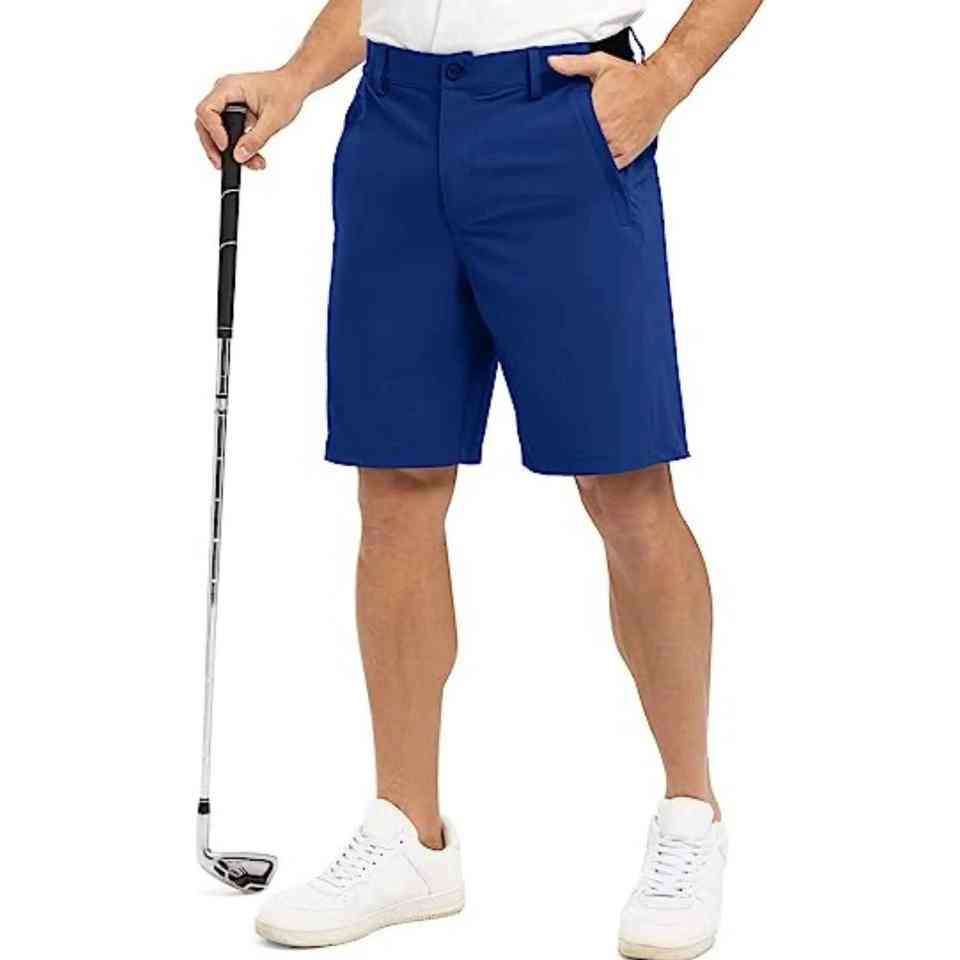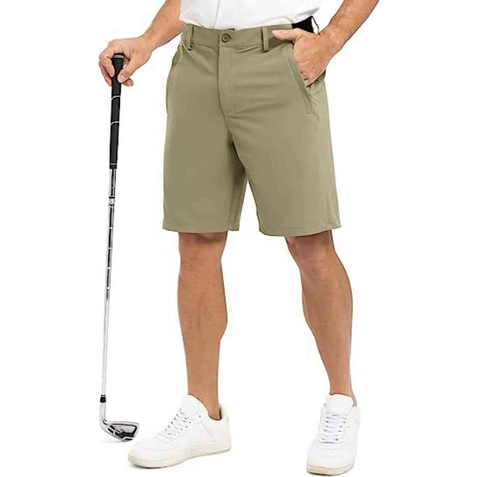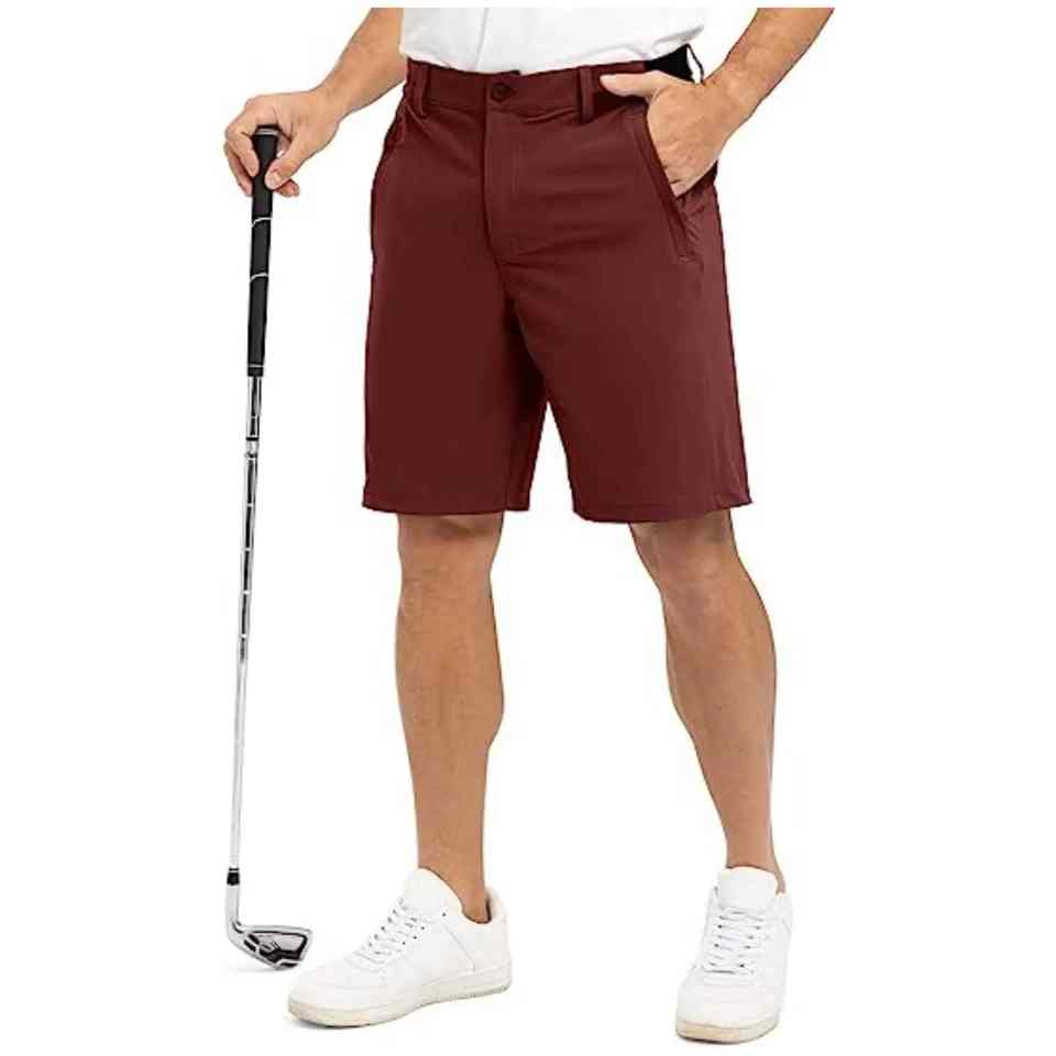 กางเกงขาสั้นเล่นกอล์ฟของผู้ชายกางเกงขาสั้นไนลอนสะท้อนแสงน้ำหนักเบาระบายอากาศได้ดีน้ำหนักเบา4ทางมีกระเป๋าสำหรับผู้ชาย