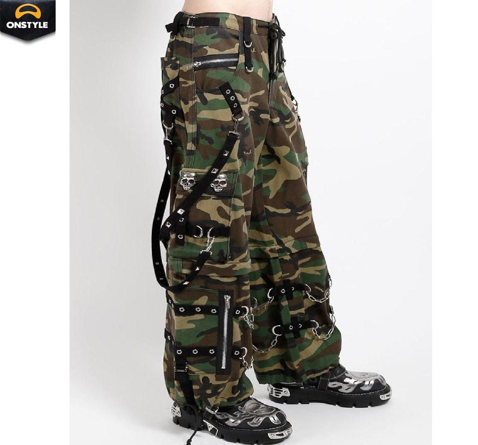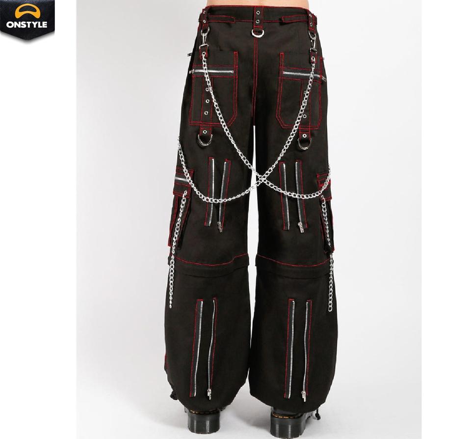 กางเกงขาบานแบบ100% สไตล์พังก์ร็อคกางเกงสไตล์โกธิคเอวสูงผ้าคอตตอน