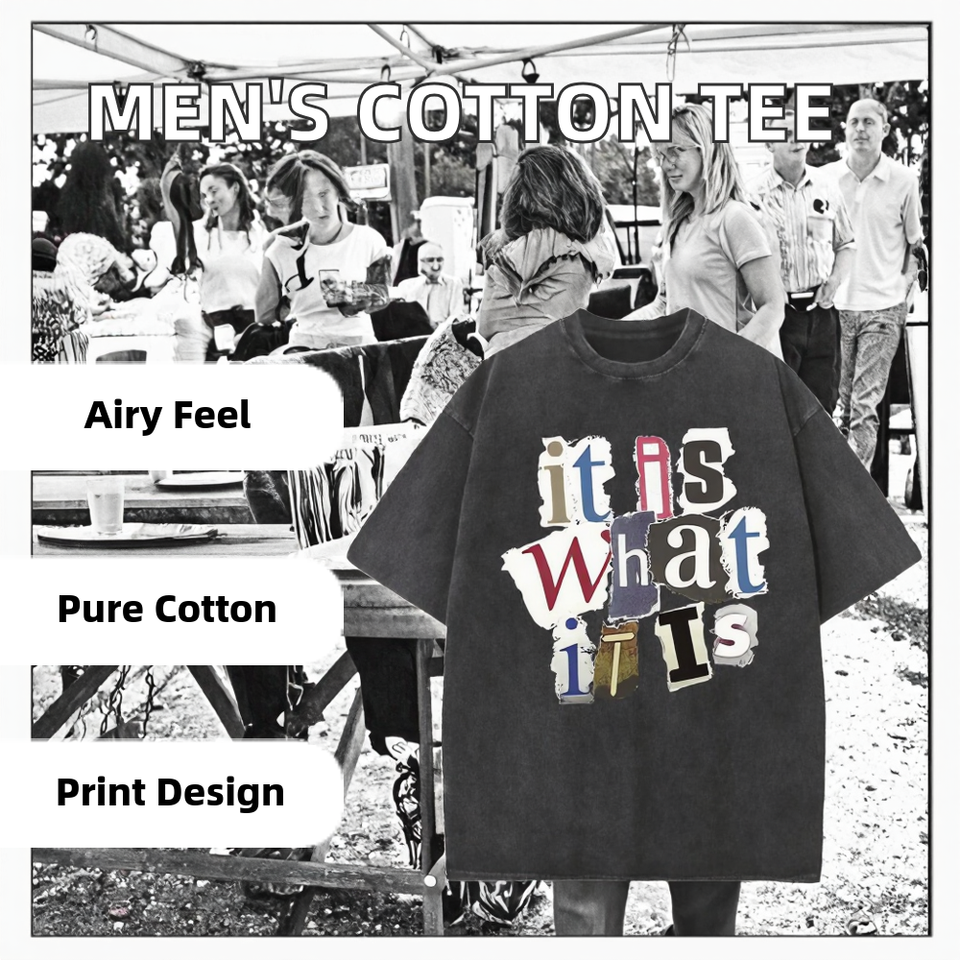 เสื้อยืดคอกลมแขนสั้นพิมพ์ลายกราฟิกสำหรับผู้ชาย ผ้าฝ้าย 100% น้ำหนัก 300 กรัม ระบายอากาศได้ดี กันยับ เนื้อผ้านุ่ม แบรนด์สั่งทำได้