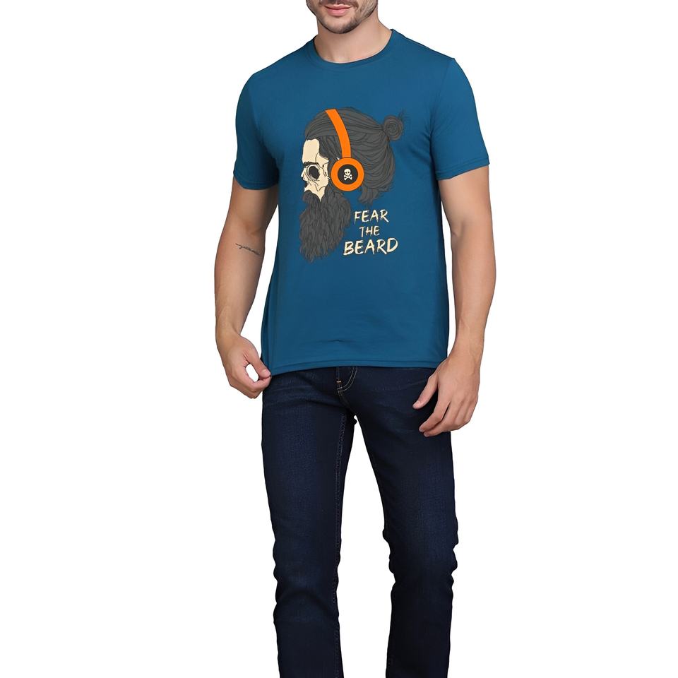 เสื้อยืดผ้าฝ้ายพิมพ์ลายกราฟิกสำหรับผู้ชาย เสื้อผ้าลำลองแนวสตรีทแขนสั้น คอกลม แฟชั่นฤดูร้อน ลายหัวกะโหลกพร้อมหูฟัง