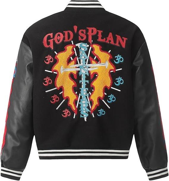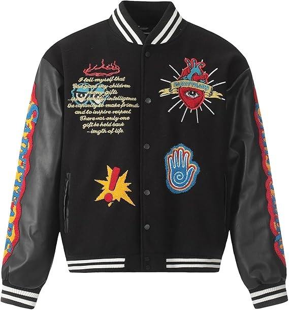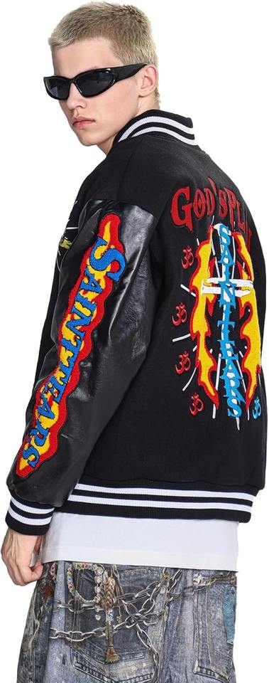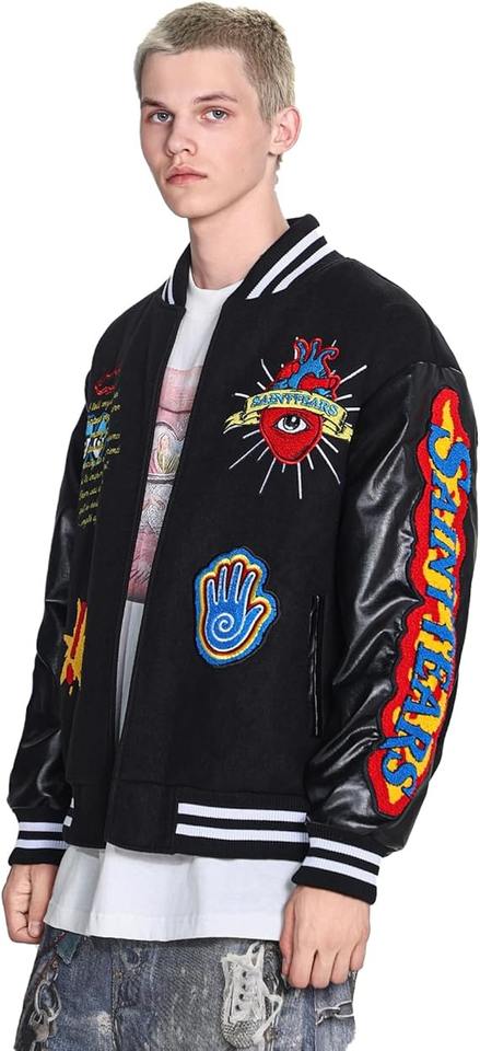 แจ็คเก็ตพิมพ์ลายกราฟิกสำหรับผู้ชาย, เสื้อแจ็คเก็ตปาร์เก้ปาร์เก้ขนแกะหนาสไตล์วินเทจซูเปอร์สตาร์