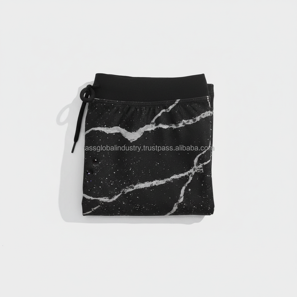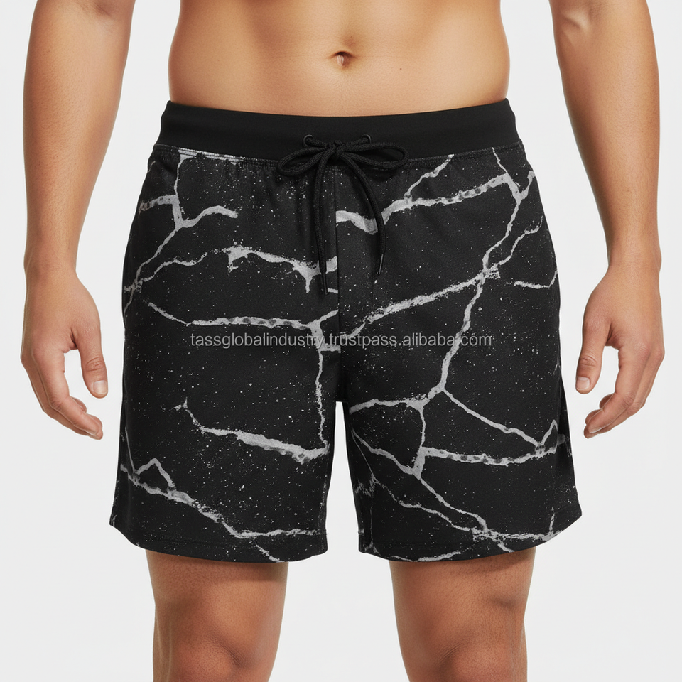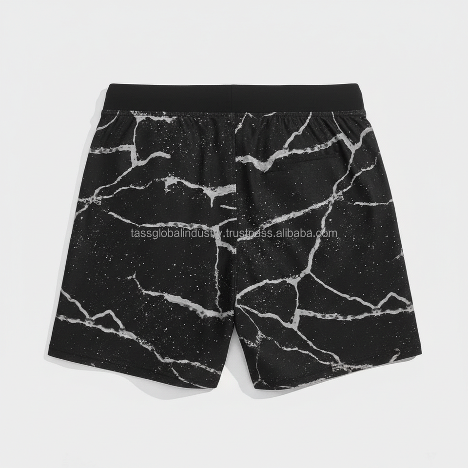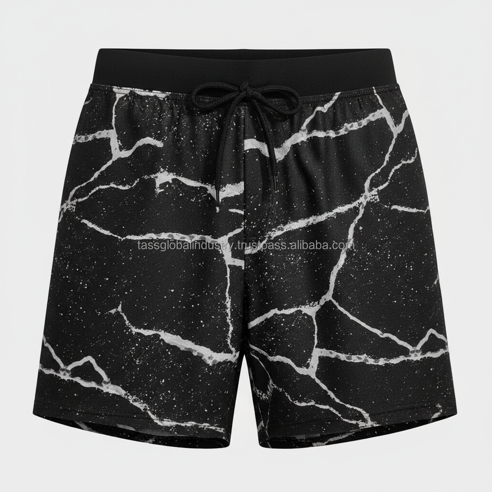 กางเกงขาสั้นลายกราฟิกผู้ชาย แห้งเร็ว OEM ลายสายฟ้า ก้อนเมฆ ดีไซน์สำหรับฤดูร้อน สไตล์สตรีทแวร์