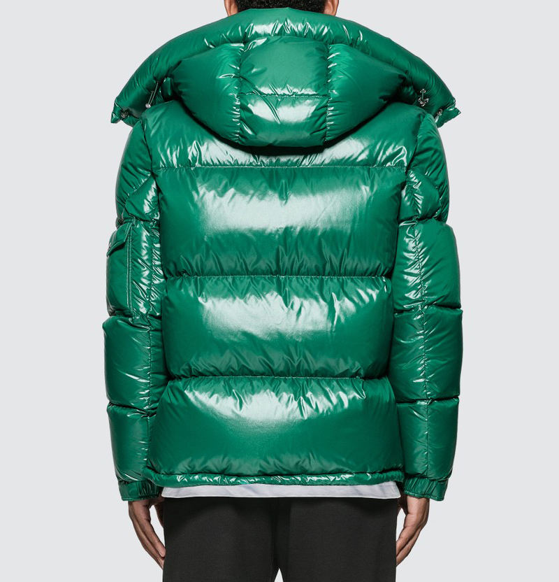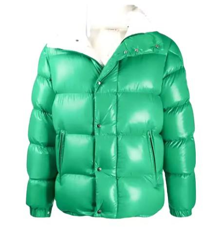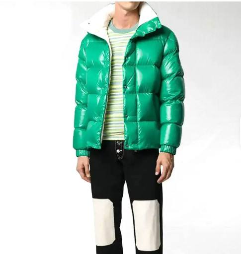 Men's Green Down Puffer Jacket Thick Winter Coat with Snap Closure & White Contrast Hood