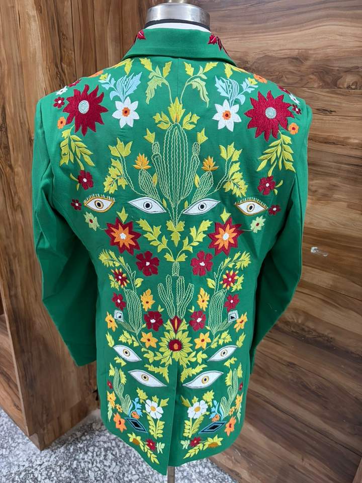 Men’s Green Floral Embroidered Blazer – Designer Wedding Party Suit Jacket with Heavy Thread Work