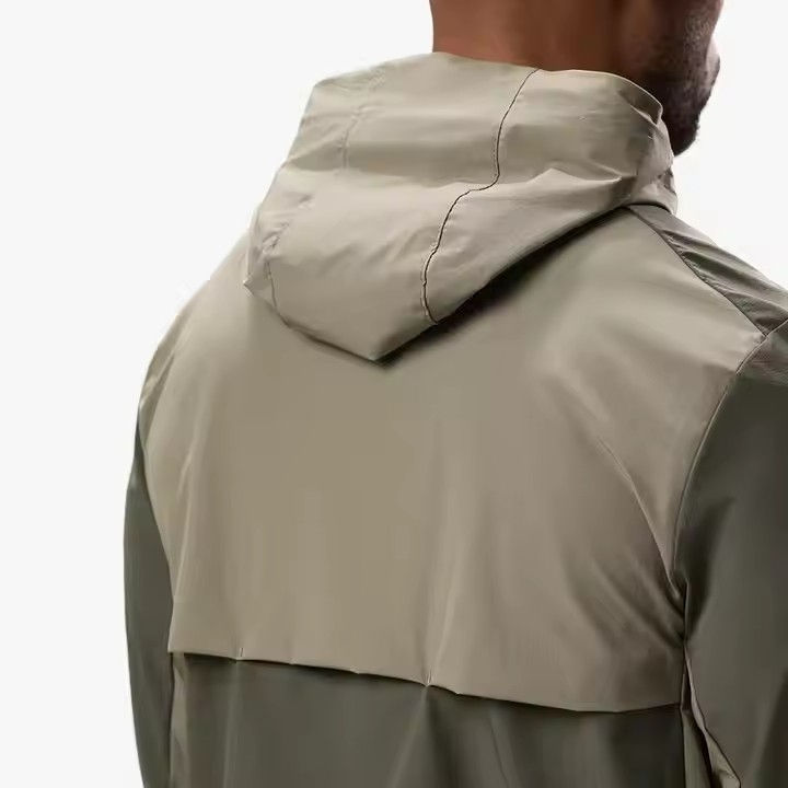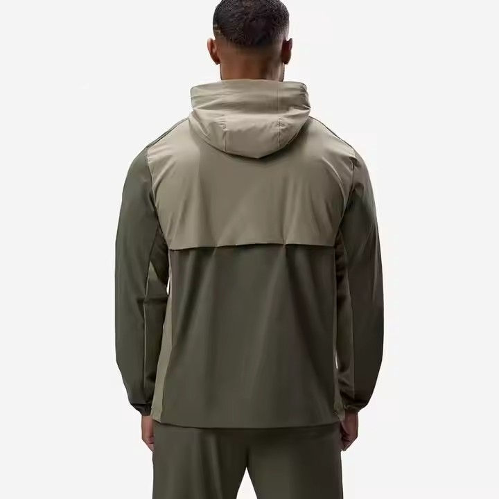 ชุดออกกำลังกายในยิมของผู้ชายชุดออกกำลังกายผ้าไนลอนแบบแห้งเร็วพร้อมฮู้ดปรับได้และโลโก้ชุดวอร์มสำหรับฤดูใบไม้ผลิและฤดูหนาว