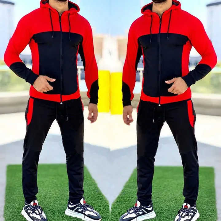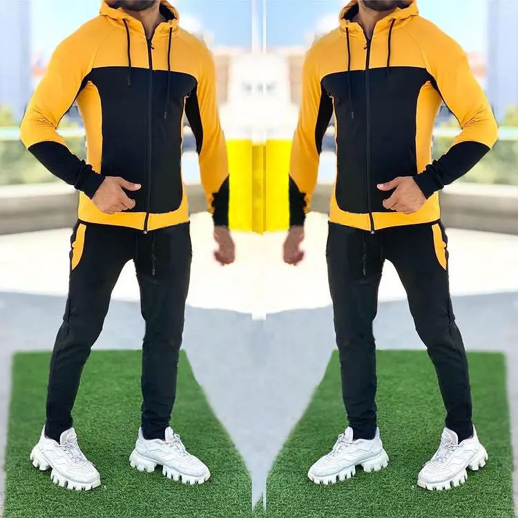 ชุดวอร์มเล่นยิมของผู้ชายชุดออกกำลังกายสำหรับฤดูหนาวชุดฝึกออกกำลังกายสีตัดกัน