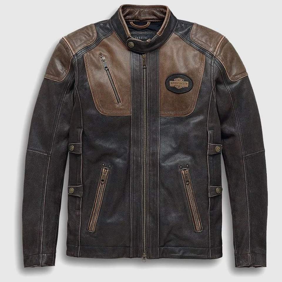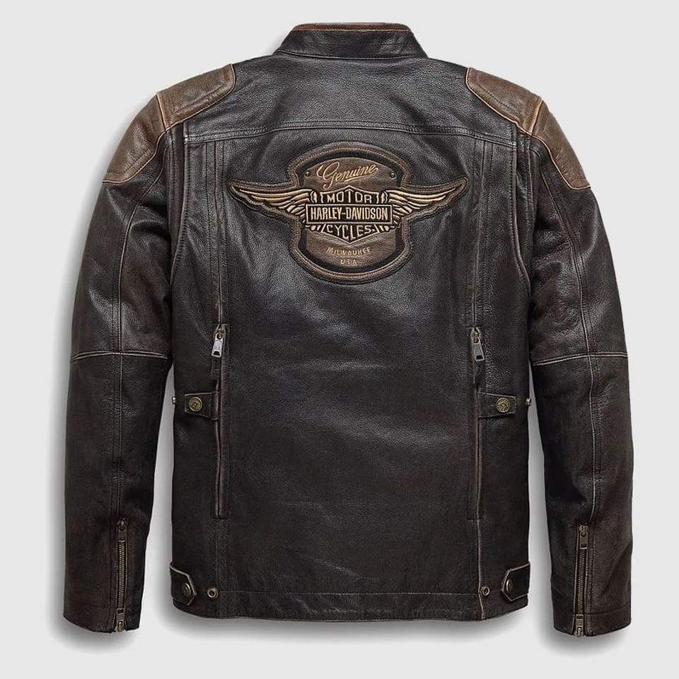 เสื้อแจ็กเก็ตหนังผู้ชายสามช่องระบาย H-D