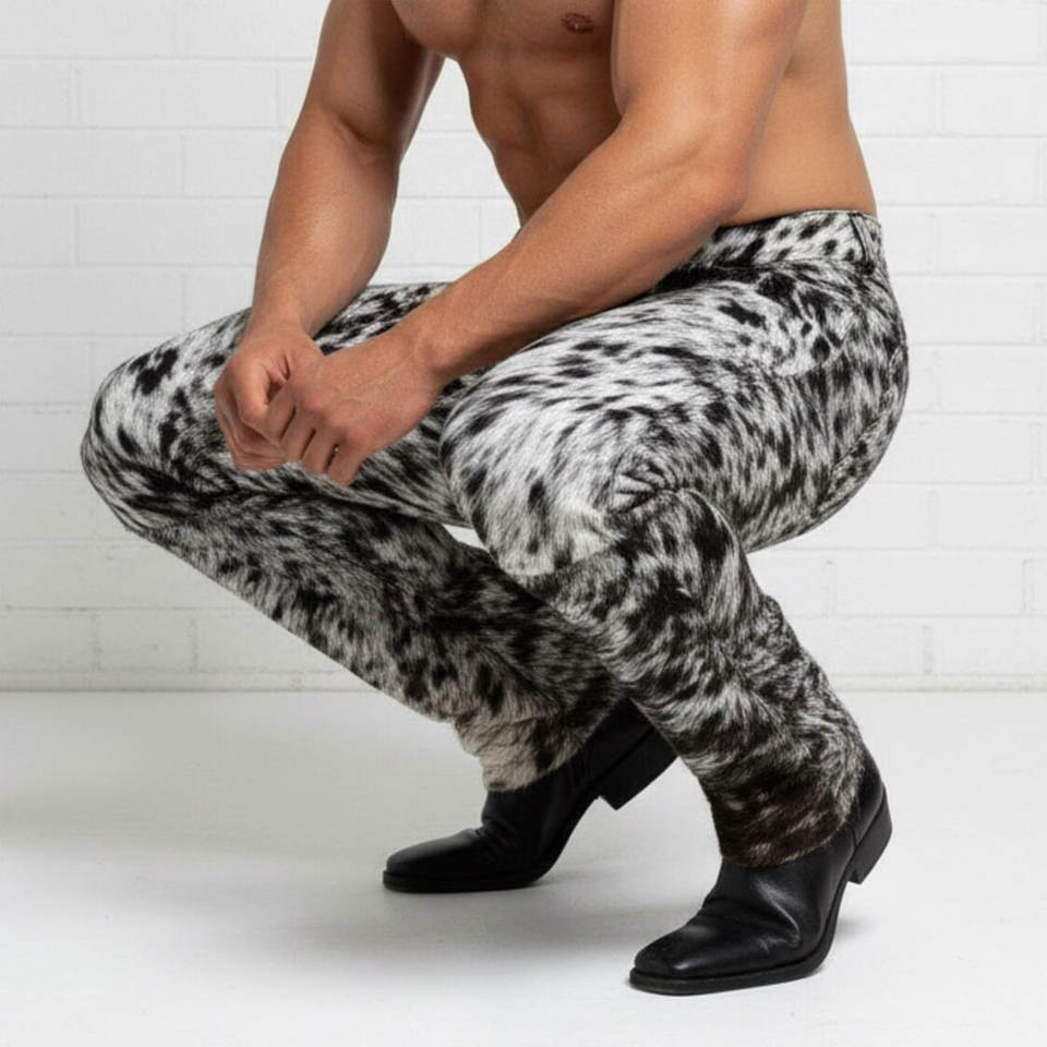 กางเกงหนังแท้บุขนสไตล์คาวบอยสำหรับผู้ชาย เสื้อผ้าลำลองสไตล์ตะวันตกสำหรับผู้ใหญ่ คุณภาพพรีเมียม