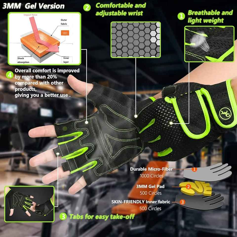 ไม่ลื่น, สายรัดข้อมือปรับได้, Hand Grips, น้ำหนักเบา, ระบายอากาศ, ความชื้นwicking, Half Finger/Fingerlessคุณสมบัติ