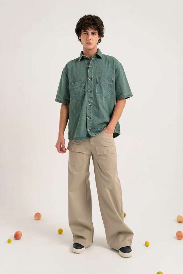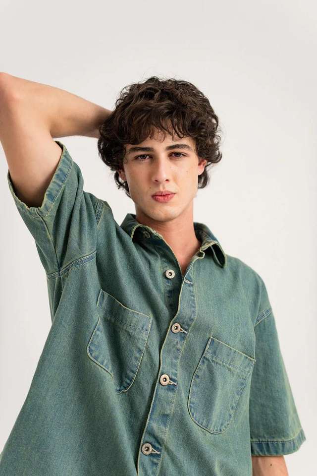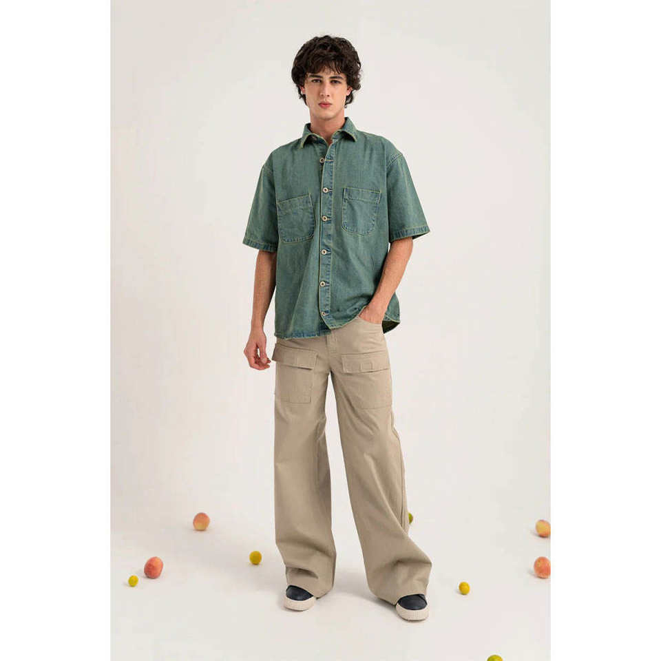 เสื้อเชิ้ตเดนิมแขนสั้นผู้ชาย ผ้าฝ้าย 100% เป็นมิตรกับสิ่งแวดล้อม ระบายอากาศดี สไตล์ลำลอง แฟชั่นสตรีทแวร์ เหมาะสำหรับฤดูร้อน สามารถเลือกสีได้