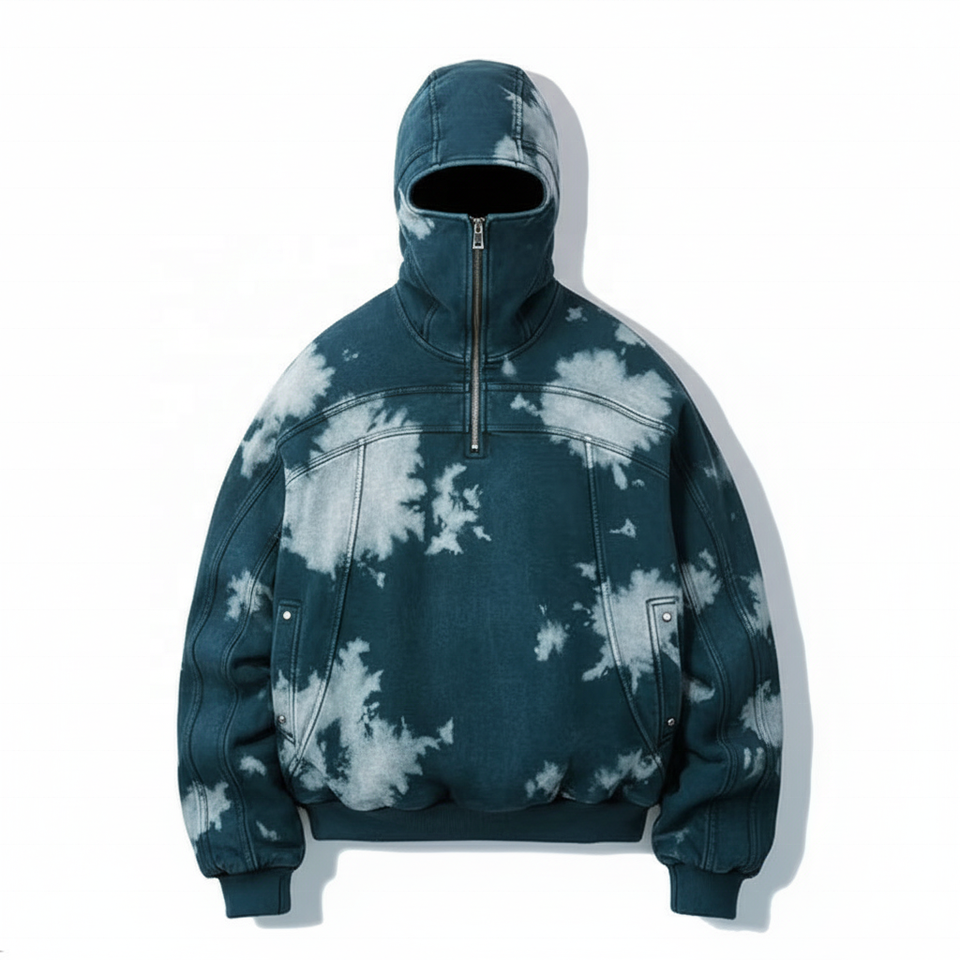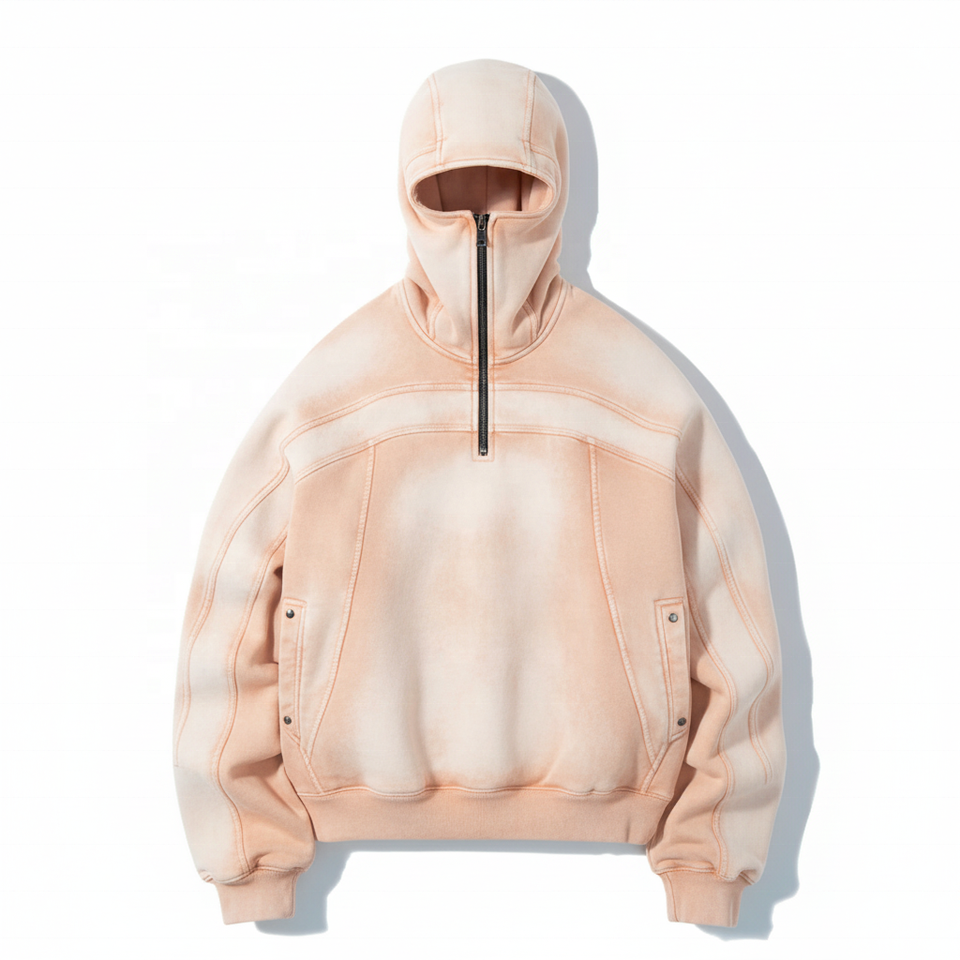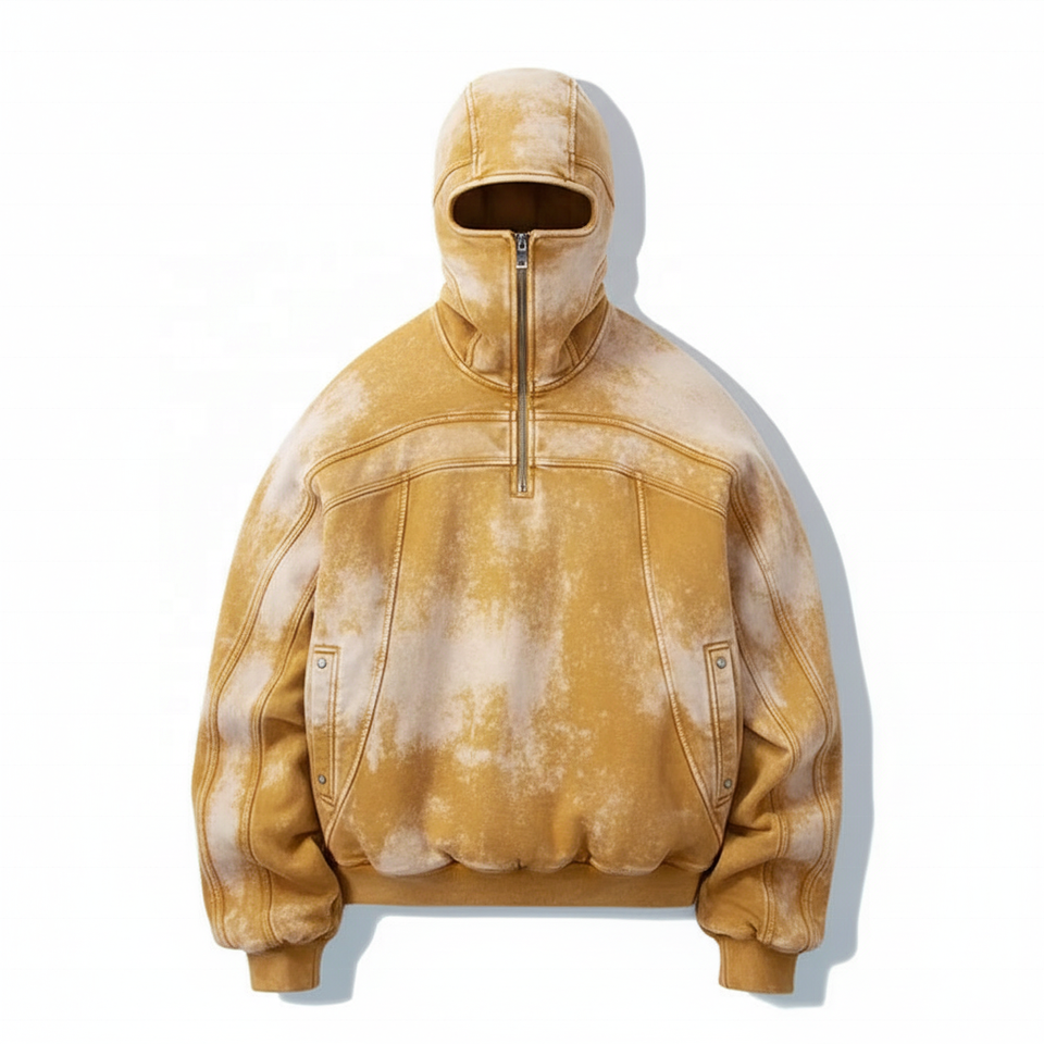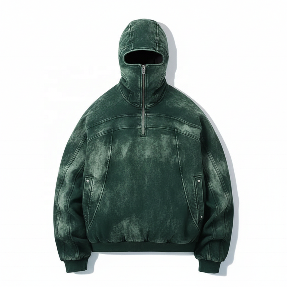เสื้อฮู้ดสวมหัวแบบมีซิปครึ่งหน้าสำหรับผู้ชายผ้าคอตตอน100% อินเทรนด์ฤดูหนาวแนววินเทจใส่กันแดดหน้ากากสไตล์นินจา