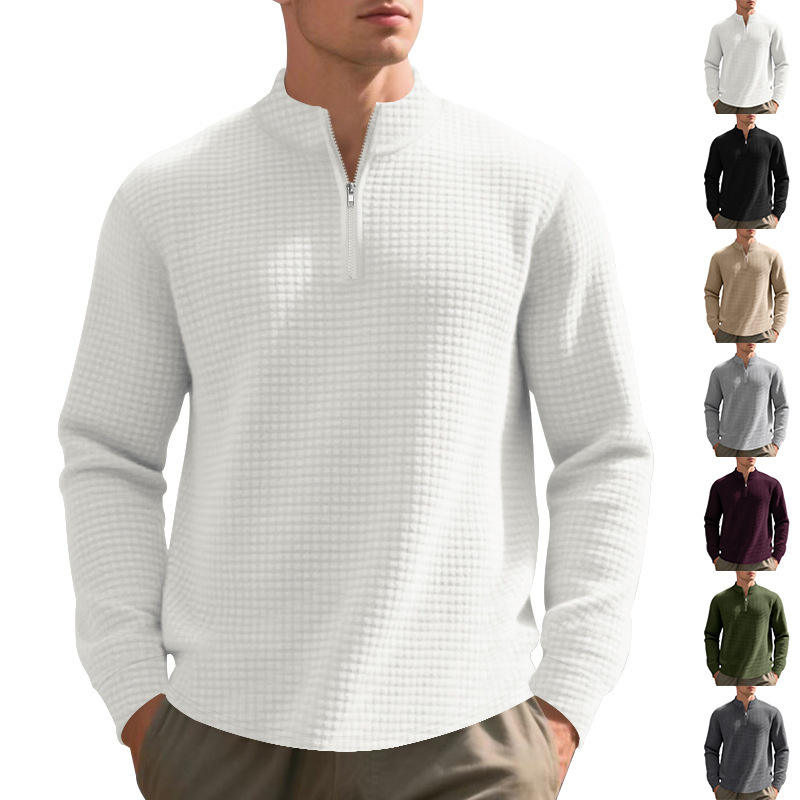 เสื้อสเวตเตอร์ผู้ชายแบบซิปครึ่งตัว สำหรับฤดูใบไม้ร่วงและฤดูหนาว สวมใส่สบาย ทรงหลวม คอตั้ง ระบายอากาศได้ดี ผ้าถักลายแจ็คการ์ด