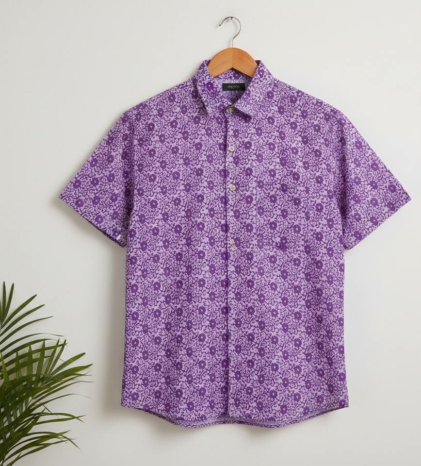 เสื้อเชิ้ตผู้ชายลายบาติกพิมพ์ลายด้วยมือ ผ้าฝ้าย 100% คุณภาพสูง กระดุมเดี่ยว แขนครึ่ง ระบายอากาศได้ดี เป็นมิตรกับสิ่งแวดล้อม เหมาะสำหรับใส่เป็นทางการ