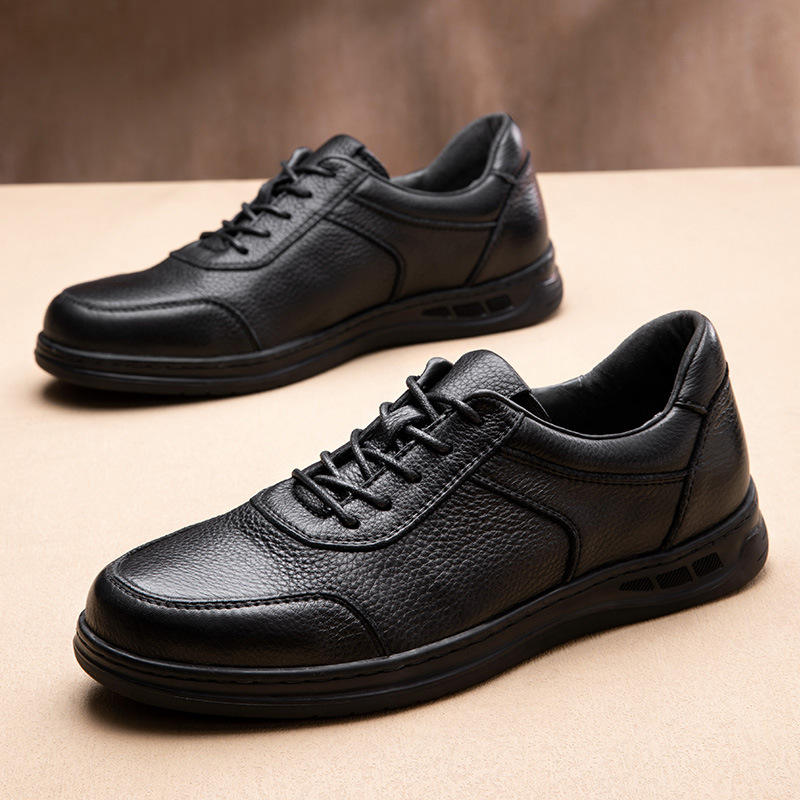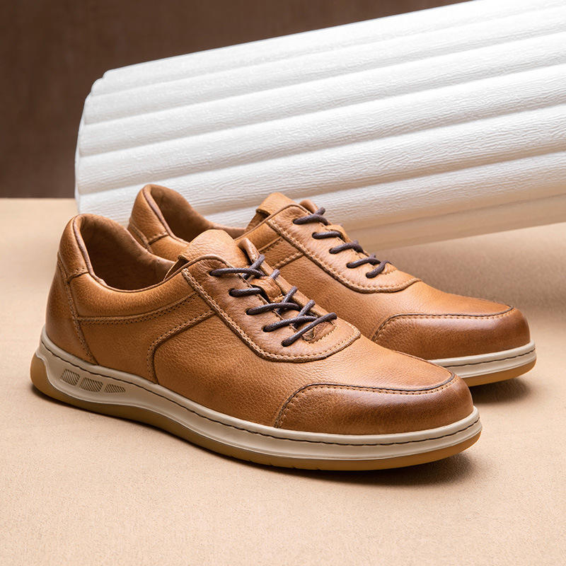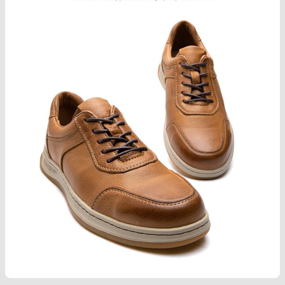 รองเท้าหนังผู้ชายทำมือ สไตล์ลำลองธุรกิจ แบบอังกฤษ ระบายอากาศได้ดี หนังวัวแท้ รองเท้าเดินเล่นกลางแจ้ง เพิ่มความสูง สำหรับฤดูใบไม้ร่วง