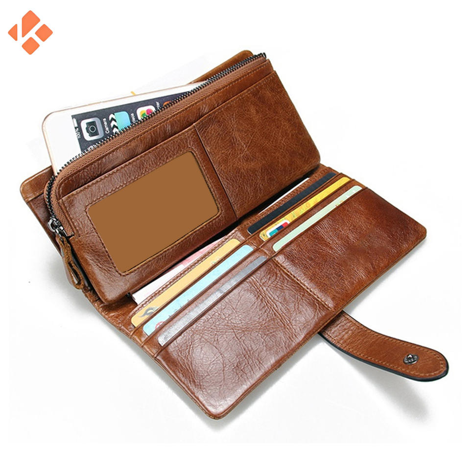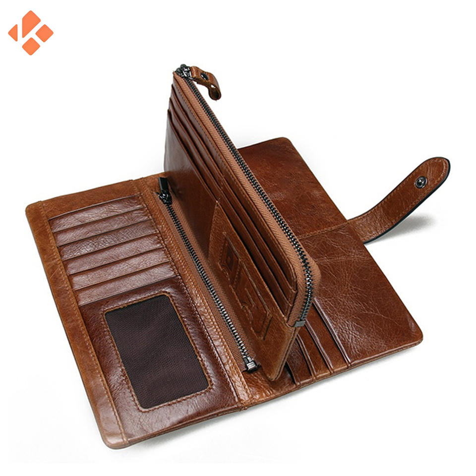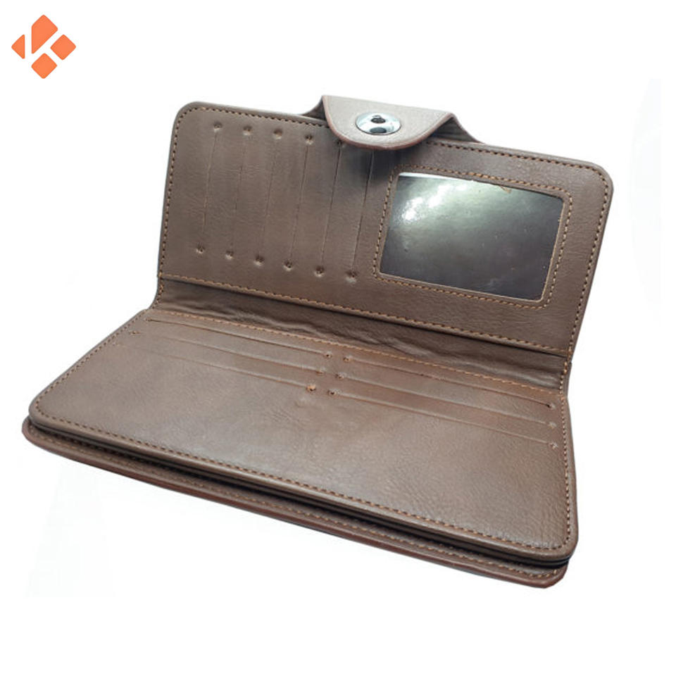 กระเป๋าสตางค์ยาวทำจากหนังทำด้วยมือสำหรับผู้ชายบางกระดุมเปิดปิดอเนกประสงค์อุปกรณ์เสริมธุรกิจโพลีเอสเตอร์สำหรับมืออาชีพหนุ่มสาว