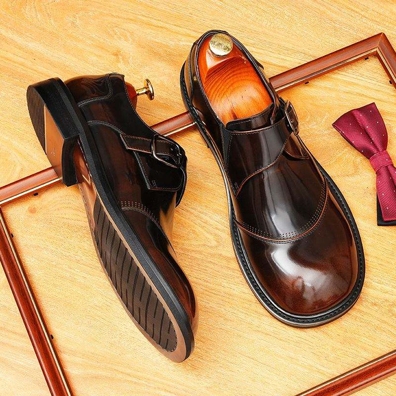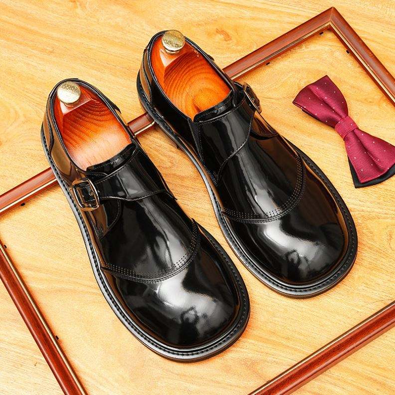 รองเท้าผู้ชายทำมือทรงเหลี่ยมสำหรับงานปาร์ตี้-หนังวัวแท้ชั้นแรกประดับพู่ห้อย สไตล์อังกฤษ ทันสมัย เหมาะสำหรับใส่ทำงาน แบบผูกเชือก น้ำหนักเบา ระบายอากาศได้ดี